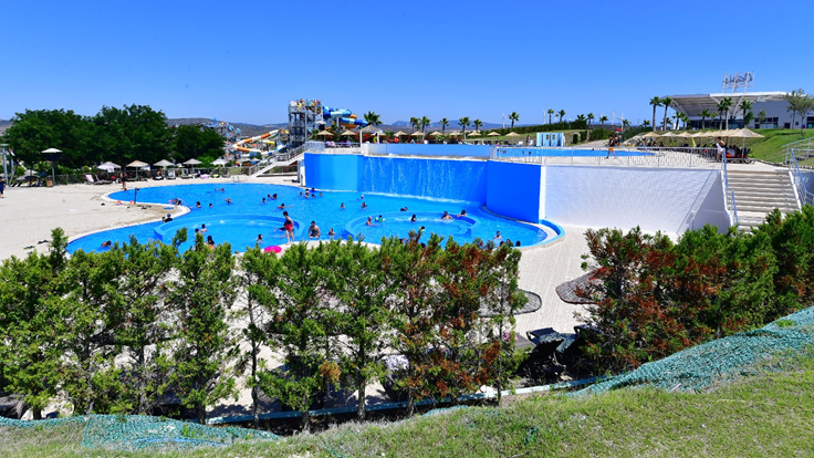 Ege Bölgesi’nin en büyük su parkı işletmesi olan Oasis Aquapark’ta her yaş grubuna göre havuz bulunuyor. Tesiste bin 300 metrekarelik büyük havuzun yanı sıra jakuzi havuzu, çocukların sınırsızca eğlendiği Aqua Tower, 0 – 3 yaş grubu çocuklar için özel olarak tasarlanan çocuk dünyası ve korsan gemisi olmak üzere 5 havuz hizmet veriyor.