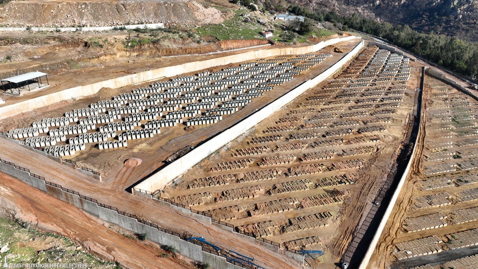 İzmir Büyükşehir Belediyesi kentin mezarlık ihtiyacını karşılamak için çalışmalarını sürdürüyor. Artan nüfus yoğunluğunu göz önüne alarak yeni gömü alanları oluşturan Büyükşehir Belediyesi, Karşıyaka Örnekköy Mahallesi’nde 55 bin 800 metrekarelik alanda 360 milyon liralık yatırımla yeni mezarlık alanı oluşturuyor. 7 bin 742 gömü kapasiteli mezarlığın 7 bin 542’si “birinci derece akrabalar için” çift katlı olarak hazırlanıyor.