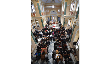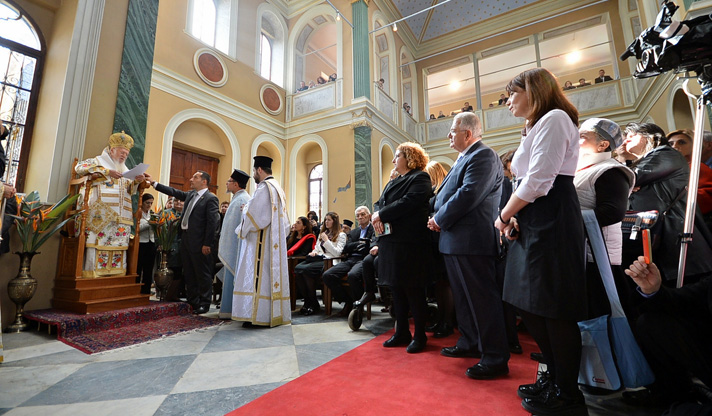 Aziz Voukla Kilisesi’nde düzenlenen ayine Chicago, İsviçre, Toronto, Simi, Boston, Meksika, Gortyna ve Arkadia, Arkalohorion, Belçika, Kyndonıai metropolitleri, din adamları, Yunanistan Büyükelçisi Kyriakos Loukakis, Yunanistan Başkonsolosu Theodoros Tsakiris, İzmir Aya Fotini Ortodoks Kilisesi Baş Rahibi Pater Kyrillos Sykis, İzmir Ortodoks Cemaati Başkanı Teodora Hacudi katıldı