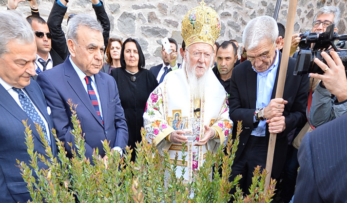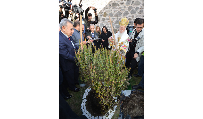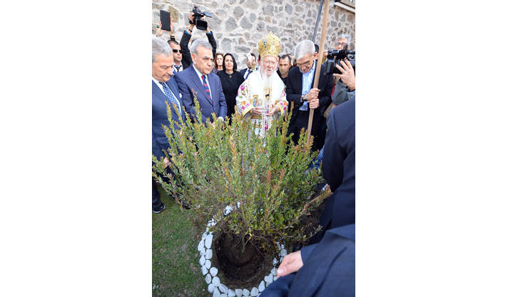 Üzerinde İzmirli Azizlerin resimleri bulunan çerçeve ve dualar eşliğinde Bartholomeos, İzmir Büyükşehir Belediye Başkanı Aziz Kocaoğlu, İzmir Ticaret Odası Başkanı Ekrem Demirtaş katılımı ile birlikte kilisenin bahçesine mersin ağacı dikildi. Ardından Bartholomeos, ayine katılanlara okunmuş kutsal ekmek dağıttı.