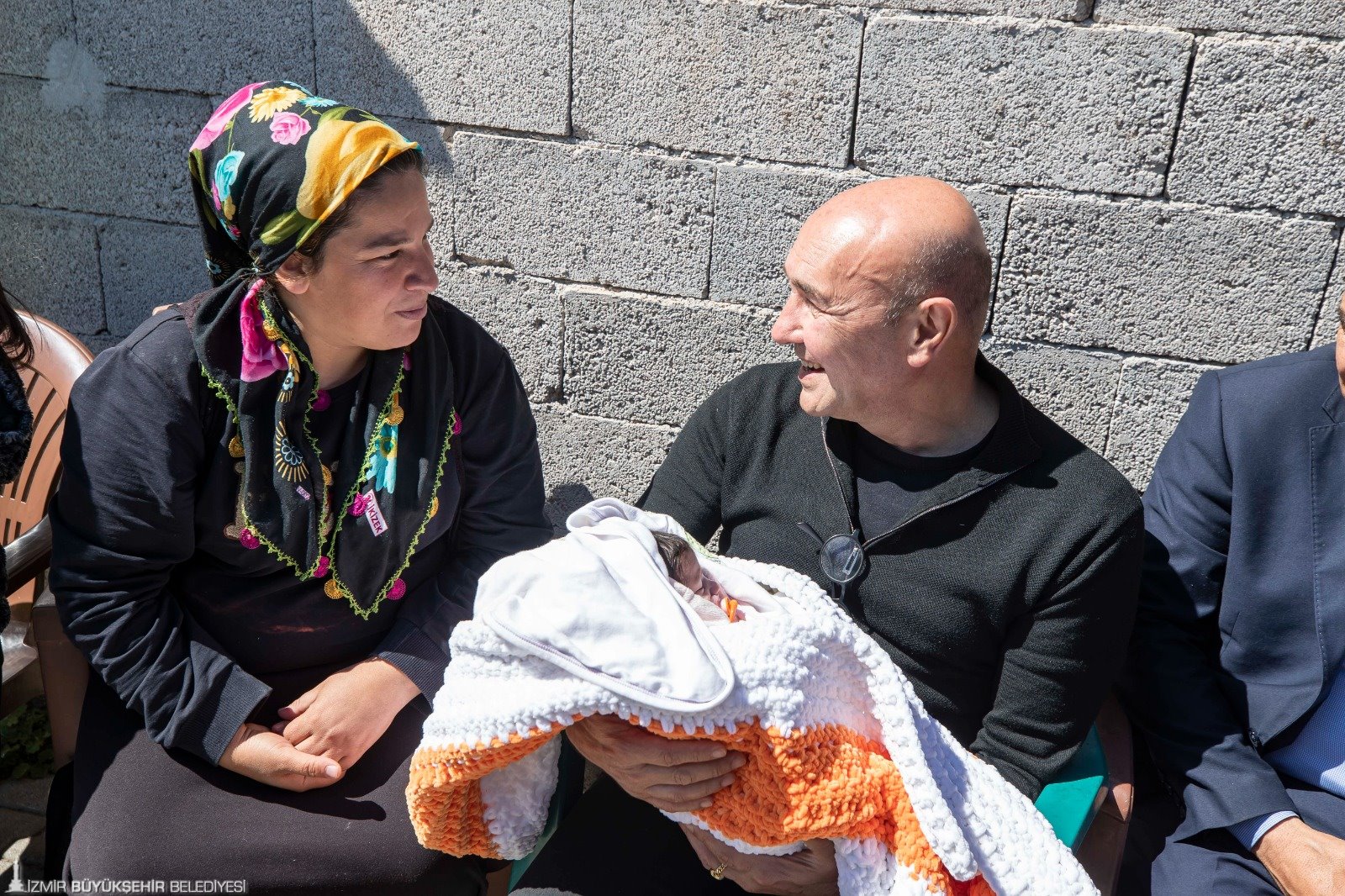 Başkan Soyer, depremin ardından dünyaya gelen Bahar bebeği de ziyaret etti. Başkan Soyer, bebeklerine doğum sırasında anneye sürekli destek olan İzmir Büyükşehir Belediyesi doktoru Bahar Tek’in adını veren Halaç ailesini de her zaman yanında olacaklarını dile getirdi.