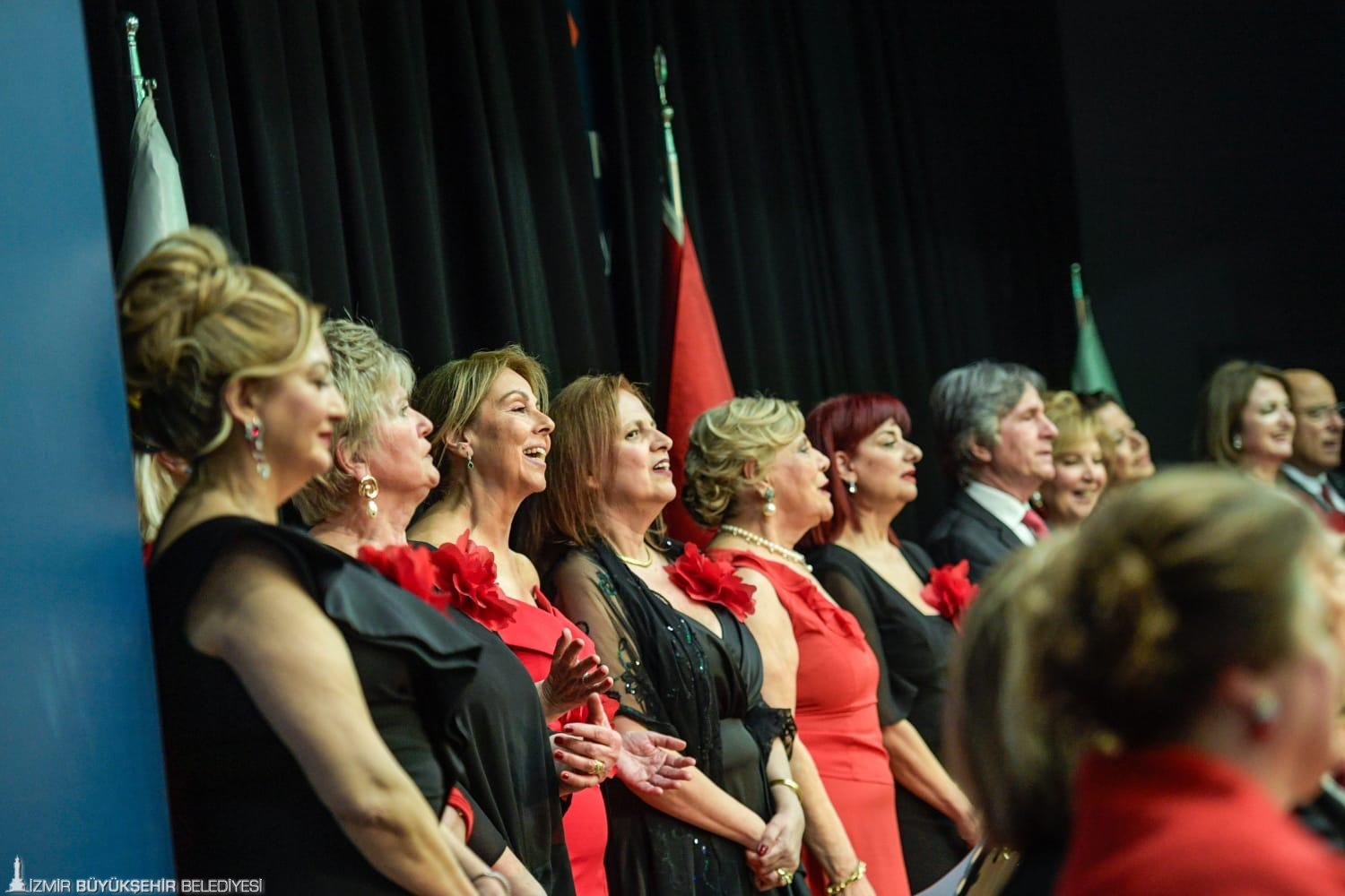 Konsere İzmir Büyükşehir Belediyesi Sosyal Hizmetler Dairesi Başkanlığı Engelli Çalışmaları Şube Müdürü Arzu Ütaş, Kültürpark Tenis Spor Kulübü Başkanı Murat Şener, KEDİ Otizm Derneği Başkanı Serap Dikmen, otizm alanında faaliyet gösteren sivil toplum kuruluşu temsilcileri de katıldı. Koronun dönem başkanı Aydan Ersezen, “Otizme farkındalık temasıyla bu dönem yolumuza devam ediyoruz. Bu yıl otizmi rengi kırmızıya gönül verdik. Sizleri kırmızı giysilerle ve kalplerimizin üzerinde taşıdığımız kırmızı güllerle karşıladık. Bu kırmızı gülleri, Moris Bencuya Otizmli Çocuklar Eğitim ve Uygulama Merkezi’ndeki çocuklarımız yaptı ve sizlere ulaştı” diye konuştu. Şef Güldehem Marmara ve müzik direktörü Selçuk Gönüldaş yönetiminde düzenlenen otizm farkındalık temalı konser, dinleyicilere keyifli bir akşam yaşattı.