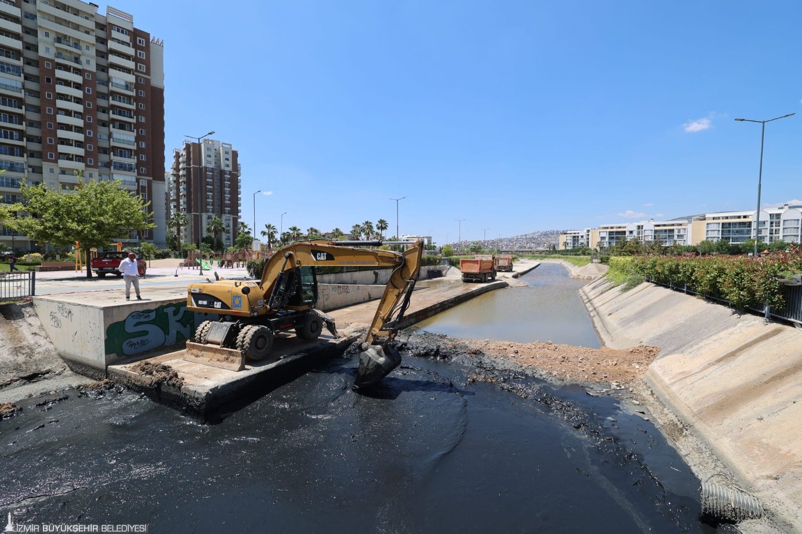 Şiddetli yağışların olduğu dönemlerde taşkın önlemleri kapsamında sürdürülen dere temizlik çalışmaları, yaz mevsiminde de bölgesel koku sorunlarının yaşanmaması için titizlikle devam ediyor. İZSU ekipleri 2023 yılının ilk 6 ayında 103 kilometrelik dere hattında temizlik çalışmasını tamamladı.