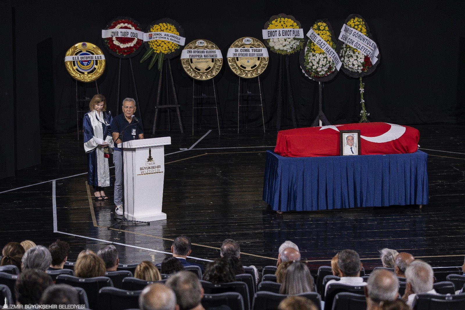 Emin Alıcı’yı asil duruşu, beyefendi kişiliği ve güler yüzü ile tanıdıklarını anlatan Başkan Tugay, “Tıp camiası çok önemli değerlerinden birini kaybetti. Emin Hoca’mızın adını bu şehirde yaşatmak benim görevlerimden biri. Bunu yerine getireceğim” diye konuştu. Alıcı’nın çok iyi bir hekim olmasının dışında iyi bir öğretici olmayı seçtiğini de hatırlatan Başkan Tugay, “Hocamızı üstün yapan davranışlardan biri de bu. Ülke sorunlarıyla da ilgilenen bir insan. Bazı insanlar ailelerini, hayatlarını ihmal etme pahasına ülkenin sorunları ile dertleniyor. Hayatları boyunca da ‘Neden daha fazlasını yapamadım’ diye üzülerek geçiriyorlar. Emin Hoca’yı seven herkese başsağlığı diliyorum. Hatırasını unutmamalarını rica ediyorum. Çok değerli, büyük bir insan. İnsanların hayattayken değerini bilmek, yanlarında olmak önemli. İyilik için mücadele etmeyi seçmiş, o mücadeleden son ana kadar vazgeçmeyenlerin kıymetini bilmeliyiz. Umarım onların, böyle insanların bıraktığı mirasa layık olabiliriz” dedi.