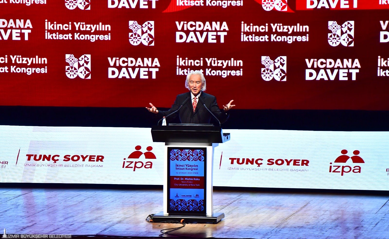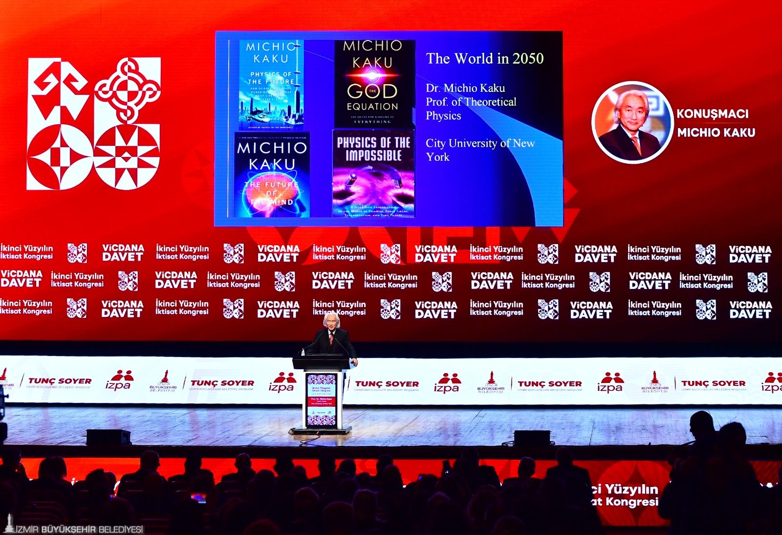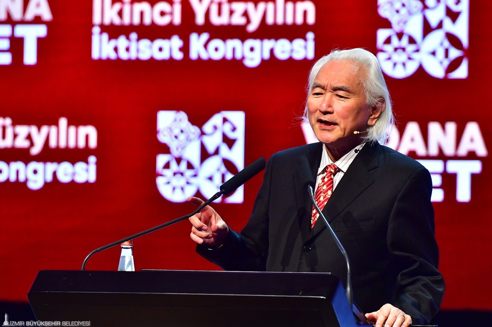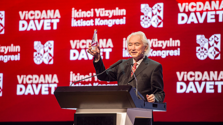 İkinci Yüzyılın İktisat Kongresi’nin ikinci gününde dünyaca ünlü teorik fizikçi Prof. Dr. Michio Kaku, “Türkiye-Gelecek 50 Yıl” başlığı altında yakın gelecek hakkında konuştu. Michio Kaku, yıldızlar arası seyahatin mümkün olacağını söyleyerek, “2050 yılında çocuklarımız ve torunlarımız beşinci dalganın enerjisini kullanacak. Yıldızların gücünden bahsediyoruz. Aklın gücünü göreceğiz. İnternetin yerine başka bir şey geçecek. Beyin net olacak. İnternet nöronlar şeklinde olacak. Gelecekte siber gerçeklikte yaşayıp çalışacağız. Oturduğunuz masadan birçok şey yapacaksınız. Gelecekte tüm çalışmalar zihni olacak. Hayallerimizi yazıcıdan çıkarabileceğiz” dedi.