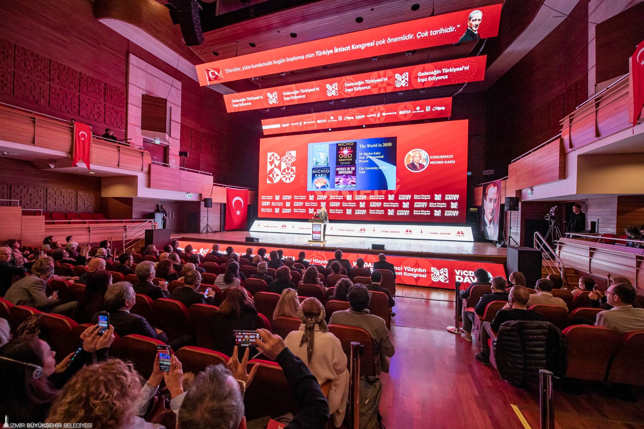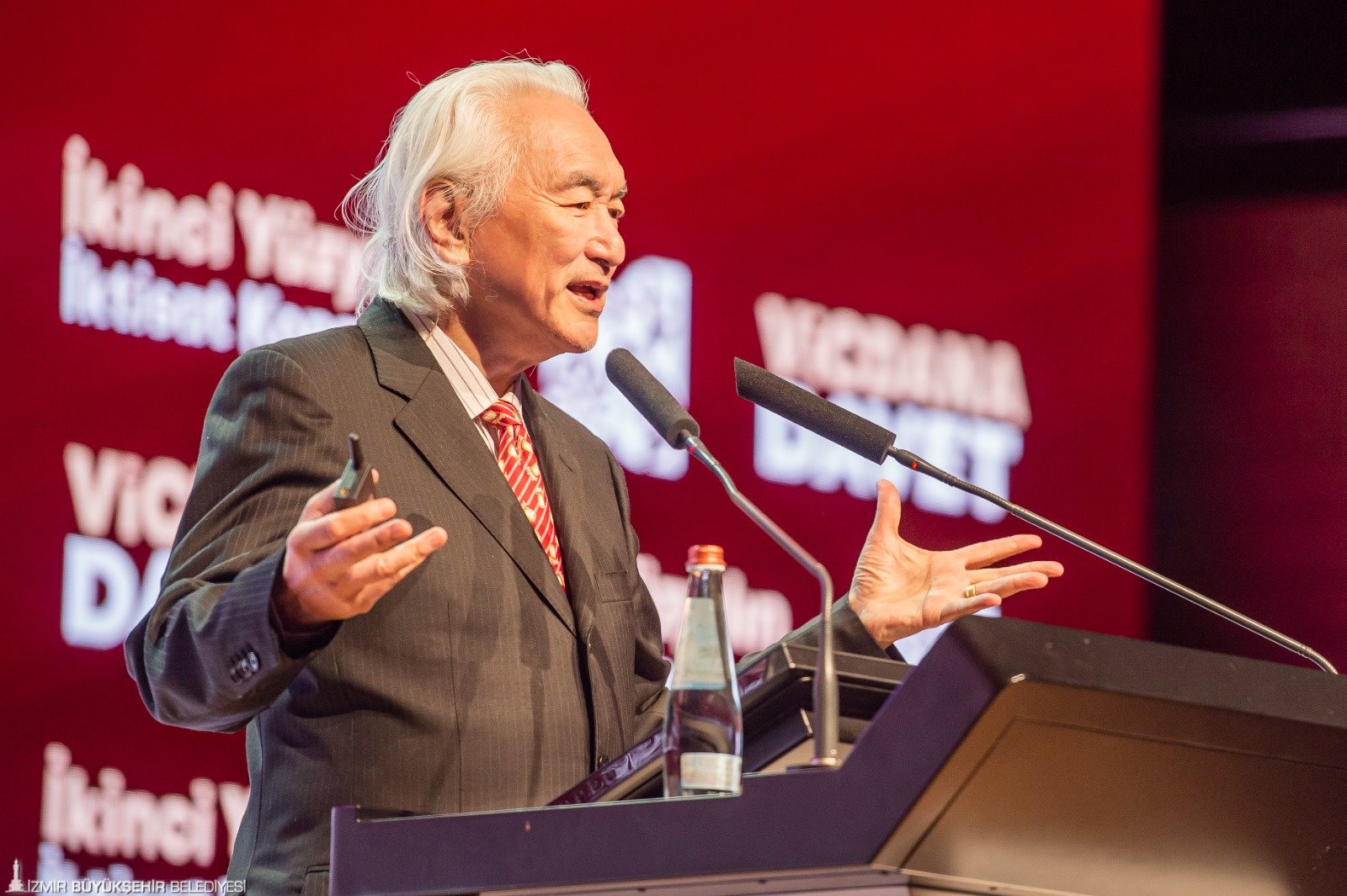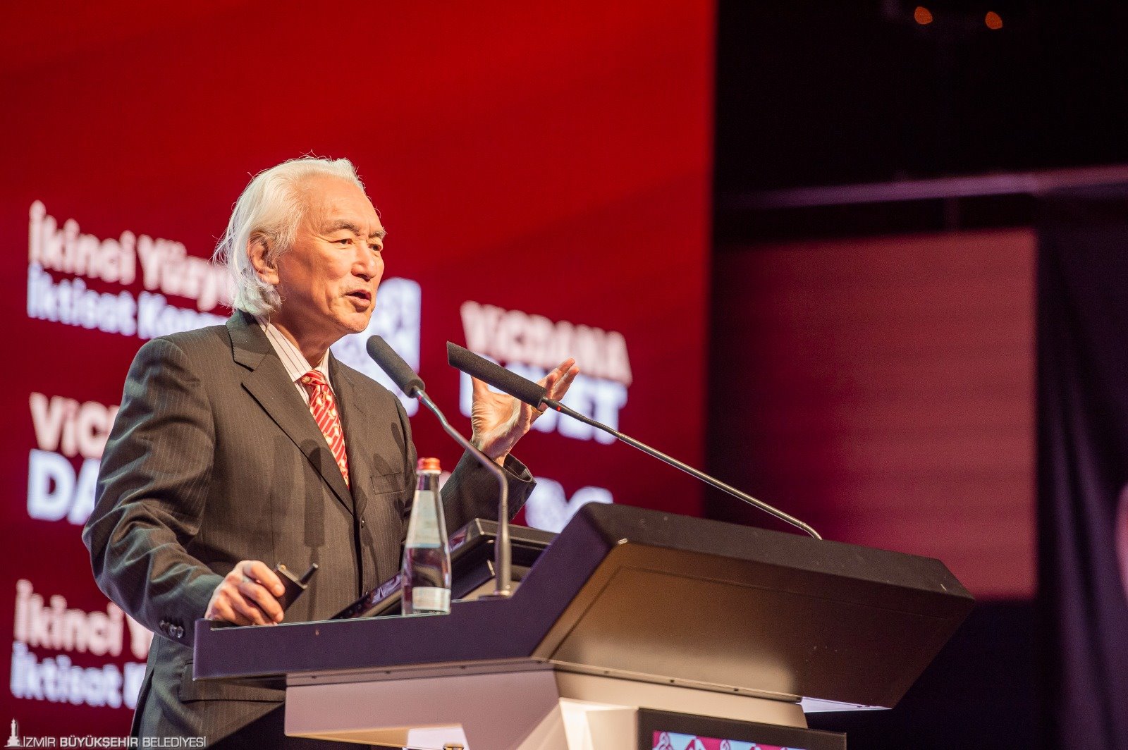 İkinci Yüzyılın İktisat Kongresi’nin ikinci gününde dünyaca ünlü teorik fizikçi Prof. Dr. Michio Kaku, “Türkiye-Gelecek 50 Yıl” başlığı altında yakın gelecek hakkında konuştu. Michio Kaku, yıldızlar arası seyahatin mümkün olacağını söyleyerek, “2050 yılında çocuklarımız ve torunlarımız beşinci dalganın enerjisini kullanacak. Yıldızların gücünden bahsediyoruz. Aklın gücünü göreceğiz. İnternetin yerine başka bir şey geçecek. Beyin net olacak. İnternet nöronlar şeklinde olacak. Gelecekte siber gerçeklikte yaşayıp çalışacağız. Oturduğunuz masadan birçok şey yapacaksınız. Gelecekte tüm çalışmalar zihni olacak. Hayallerimizi yazıcıdan çıkarabileceğiz” dedi.
