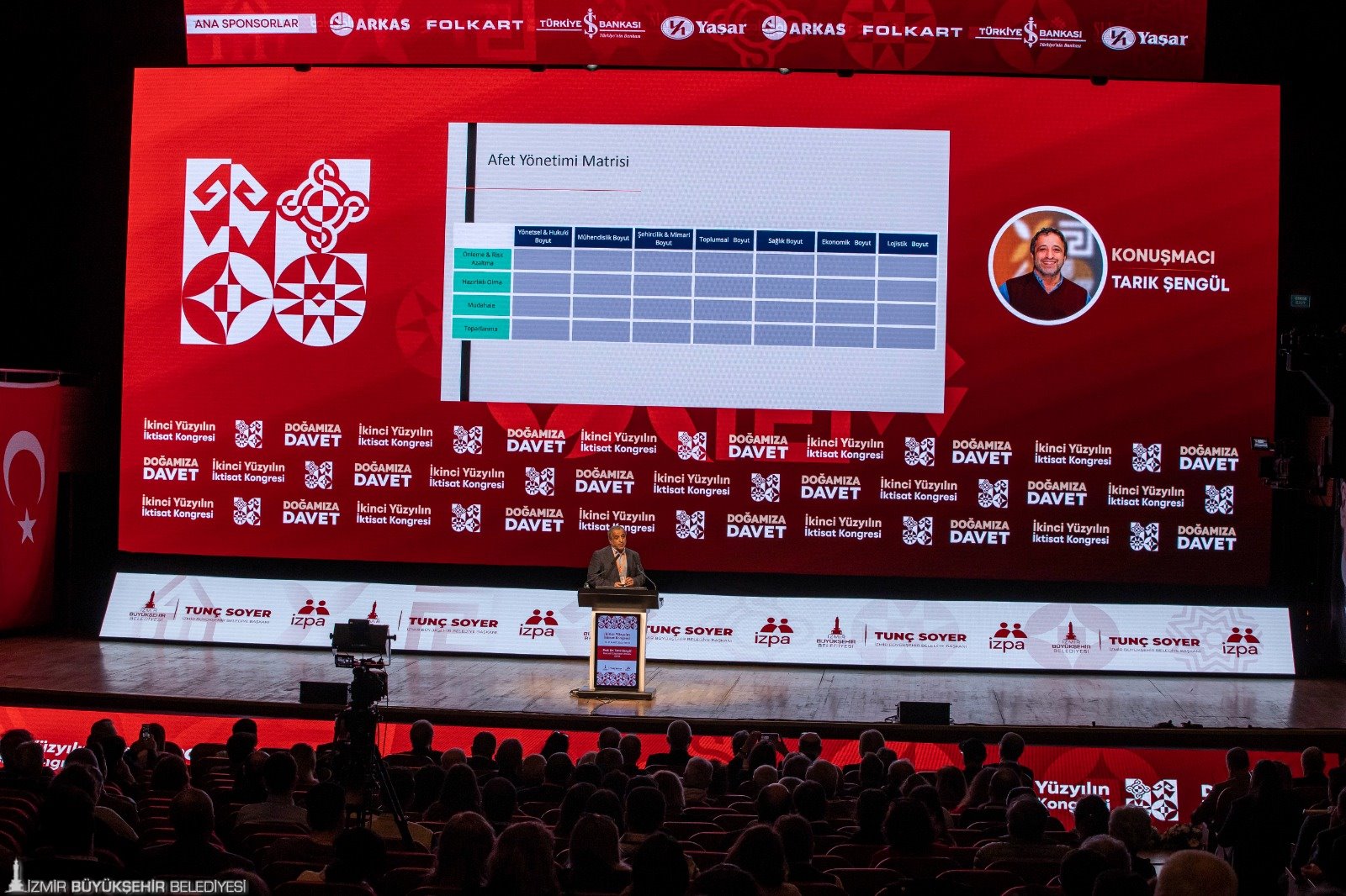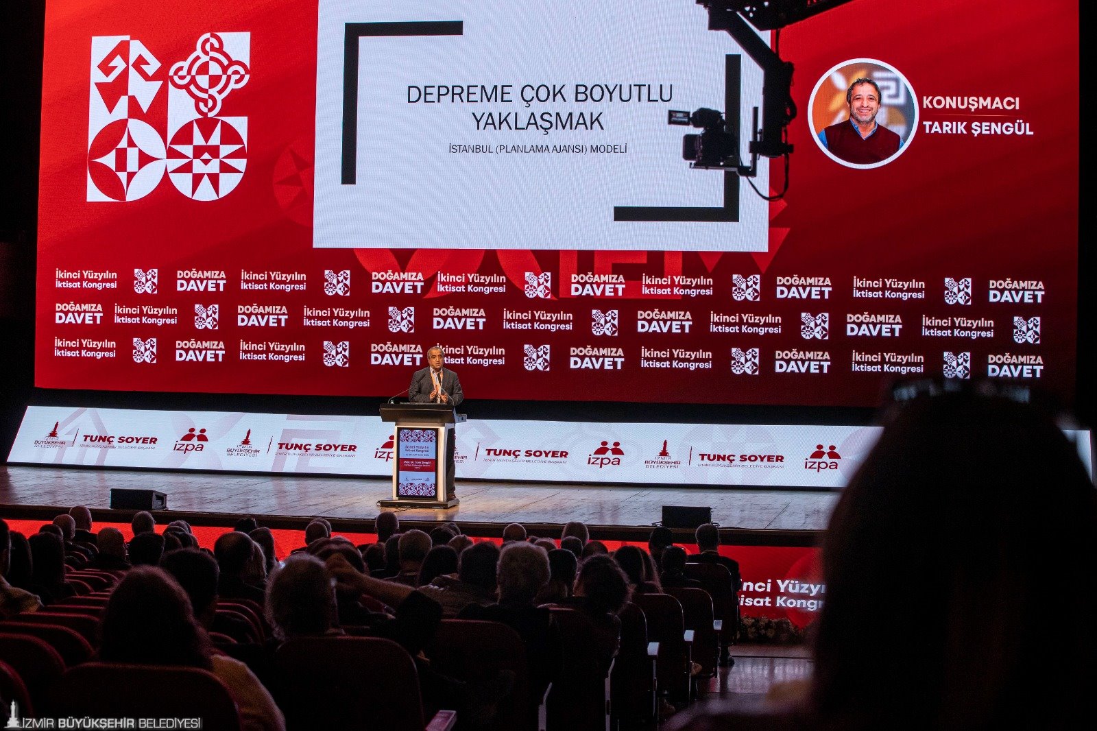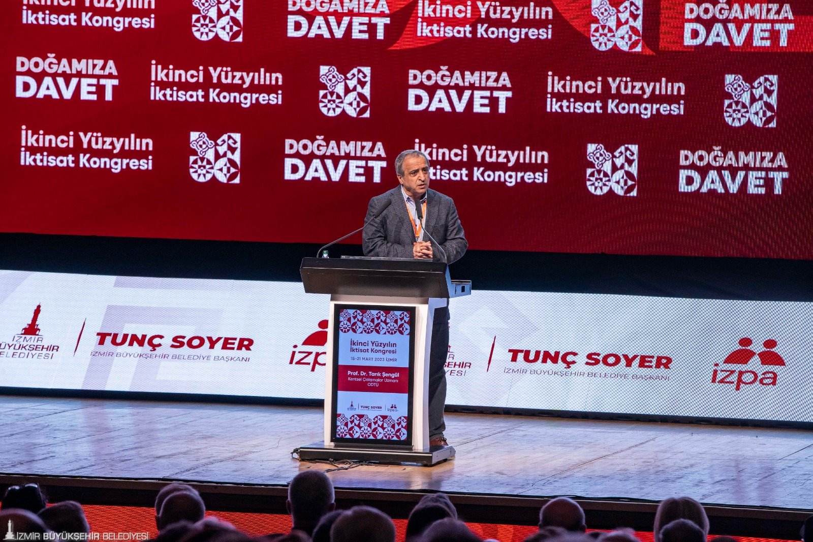 İkinci Yüzyılın İktisat Kongresi’nin, “Doğamıza Davet” temaslı dördüncü gün oturumları 18 Mart Şehitleri Anma Günü ve Çanakkale Deniz Zaferi nedeniyle saygı duruşu ve İstiklal Marşı ile başladı. Gazeteci Özlem Gürses’in sunumunu yaptığı oturumunun ilk konuşmacısı ODTÜ İktisadi ve İdari Bilimler Fakültesi Siyaset Bilimi ve Kamu Yönetimi Bölüm Başkanı Prof. Dr. Tarık Şengül oldu. İstanbul’da başlattıkları depreme dayanıklı kentler oluşturmaya yönelik yaklaşımlardan söz eden Prof. Dr. Tarık Şengül, “Belirli aralıklarla afetleri yaşıyoruz. İstedik ki 1999 depremi bir olay olsun. Aradan geçen süreye baktığımızda 1999 depremi bir olay olmadı. Kentleri nasıl kurmalıyız diye yine tartıştık, düşündük. Yaşam tekrar eskiye döndü. Rant projelerinin altına imzalar atıldı ve 6 Şubat depremine zemin hazırladık. Bugün bizlere düşen en önemli görev bu son yaşadığımız depremi olaya çevirmek. Karşımızda büyük bir rant meselesi var. Bu sadece siyasal mesele değil. Alışkanlık haline gelmiş, yönetim biçimi olmuştur. Buna dur diyemiyorsak bize yazıklar olsun. Bunu geçiştiremeyiz. Artık yüzleşmemiz lazım. Geleceğe yönelik farklı kentler planlamamız gerek” dedi.