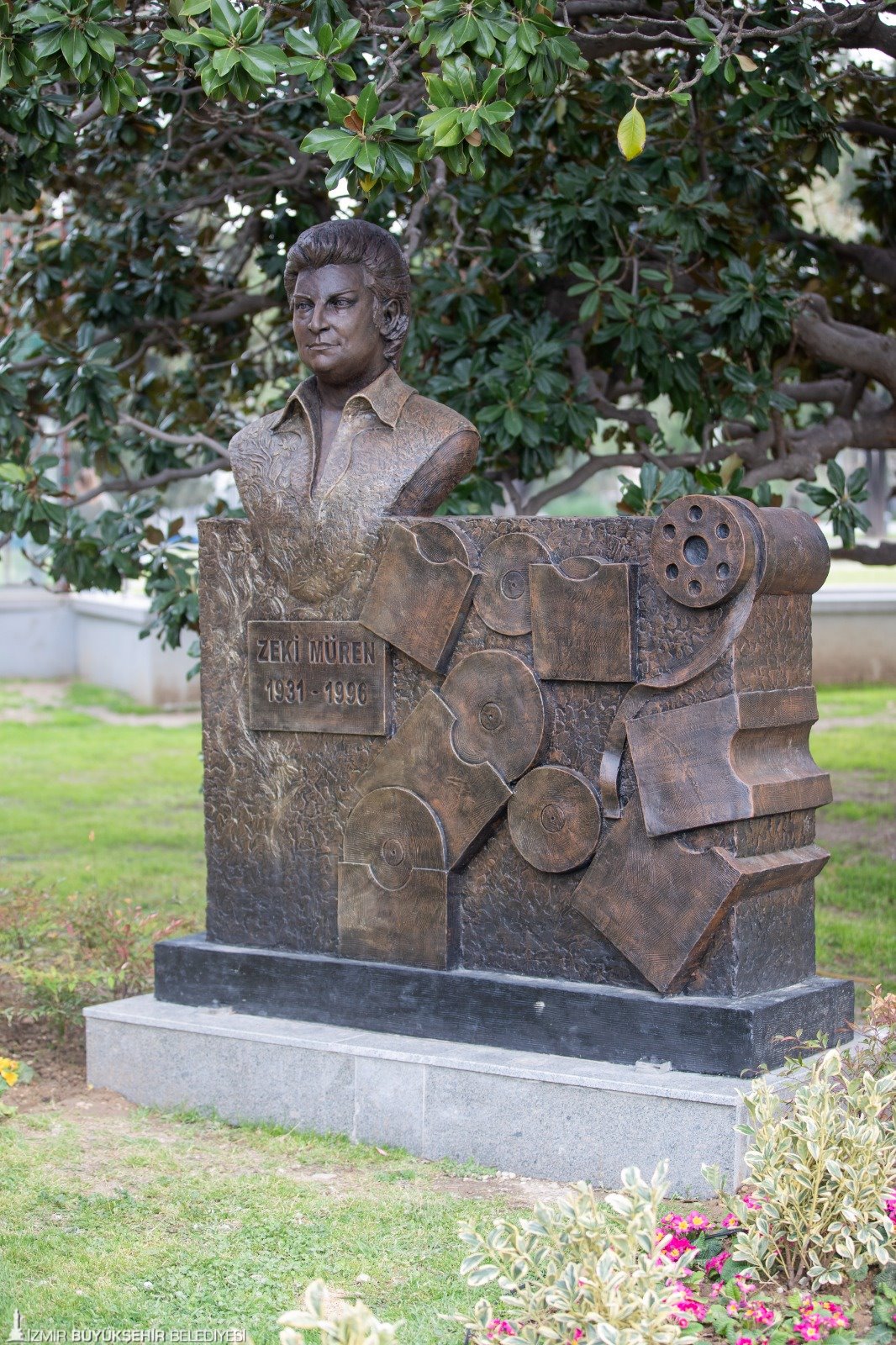 İzmir Büyükşehir Belediyesi, TRT İzmir Televizyonu'nun Kültürpark'taki stüdyolarında kendisi için düzenlenen tören sırasında geçirdiği kalp kriziyle 28 yıl önce hayata gözlerini yuman Türk müziğinin sanat güneşi Zeki Müren’in anısını yaşatmak için heykelini dikti. Kaskatlı Havuz ile İsmet İnönü Sanat Merkezi arasında manolya ağacının altında yer alan heykeli ziyaret eden İzmir Büyükşehir Belediye Başkanı Tunç Soyer, “Zeki Müren ile İzmir arasında güçlü bir bağ olduğunu düşünüyorum. Bu şehir Anadolu’nun, Türkiye’nin nasıl öncüsüyse Zeki Müren de aslında sanat güneşi olma kimliğinin bir ileri adımını hep İzmir’de atmış” dedi.