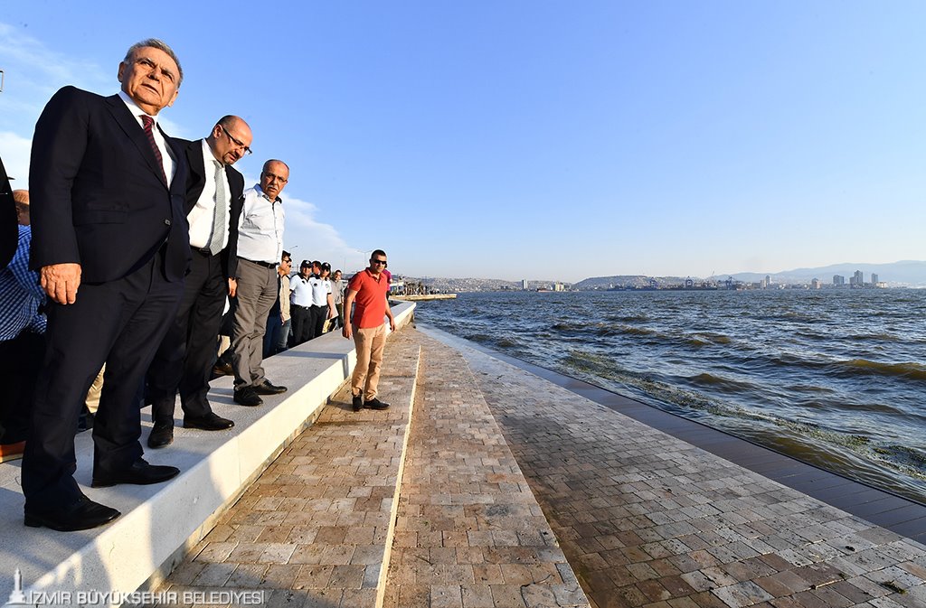 İzmirlileri denizle buluşturmak amacıyla 40 kilometrelik sahili düzenlemek için hazırladıkları İzmirDeniz Projesi'ne ilişkin bilgi veren İzmir Büyükşehir Belediye Başkanı Aziz Kocaoğlu, Türkiye'de ilk defa katılımcı bir yönetim anlayışı ile 100'ü aşkın mimar, şehir plancısının üzerinde çalıştığı projenin önemli bir bölümünü tamamladıklarını kaydeden Başkan Kocaoğlu, "Sahil şeridimizi 5'e bölerek çalışmalara başladık. Bayraklı 1. etabı, Bostanlı'da ilk etabı bitirdik. Mithatpaşa Alt Geçidi'nin üstündeki meydan çalışmamız da bittiğinde Üçkuyular-Konak sahili tamamlanmış olacak. Kordon 1. Derecede Doğal Sit olduğu için planlar devam ediyor" diye konuştu.
