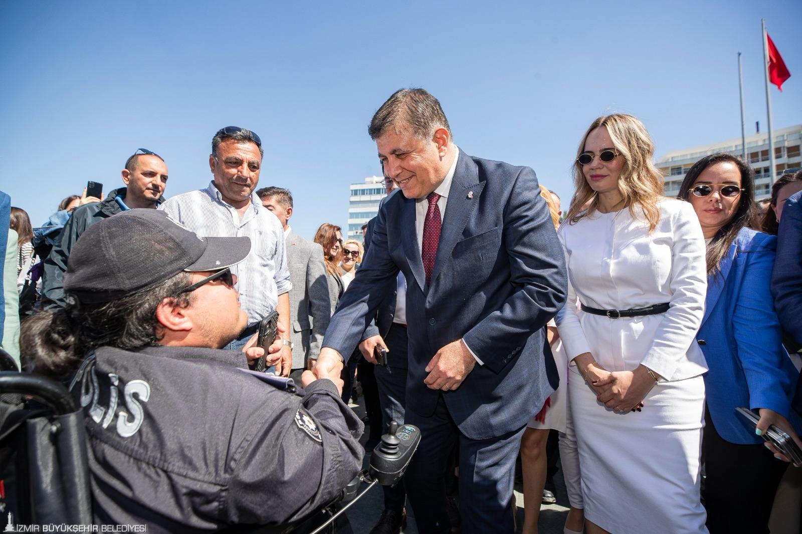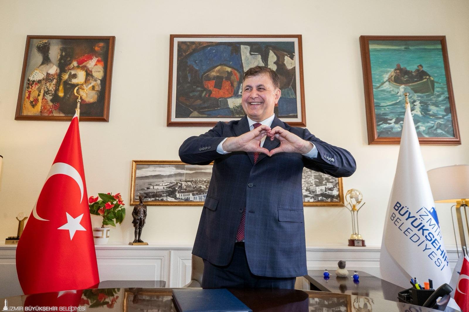 “İnsanlarımızın sıkıntılarına acil çözümler üretmek istiyorum. O nedenle belediye çalışanları arkadaşlarımızla çok güzel hizmetler üreteceğiz. İzmir için çok güzel bir dönem olacak. İzmir bizim dışarıdan gelip hizmet ettiğimiz bir yer değil. Burası bizim evimiz. Burası bizim yuvamız. Bu işi yürekten yapmanızı istiyorum” dedi.