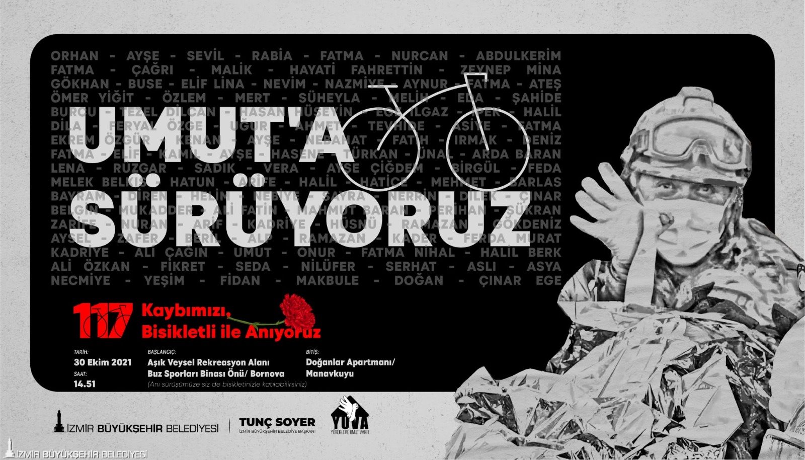 30 Ekim İzmir depreminin yıl dönümünde İzmir Büyükşehir Belediyesi’nin hazırladığı anma programı kapsamında Umut için bir bisiklet etkinliği de var. Umutlara Yürek Vakfı işbirliğiyle düzenlenen programla 117 bisikletli depremin yaşandığı saat olan 14.51’de Aşık Veysel Rekreasyon Alanı Buz Sporları binası önünden Manavkuyu’daki Doğanlar Apartmanı’na “Umut’a Sürüyoruz” sloganıyla ve Umut’un çizdiği resmin üzerinde bulunduğu tişörtlerle bisiklet sürecek.