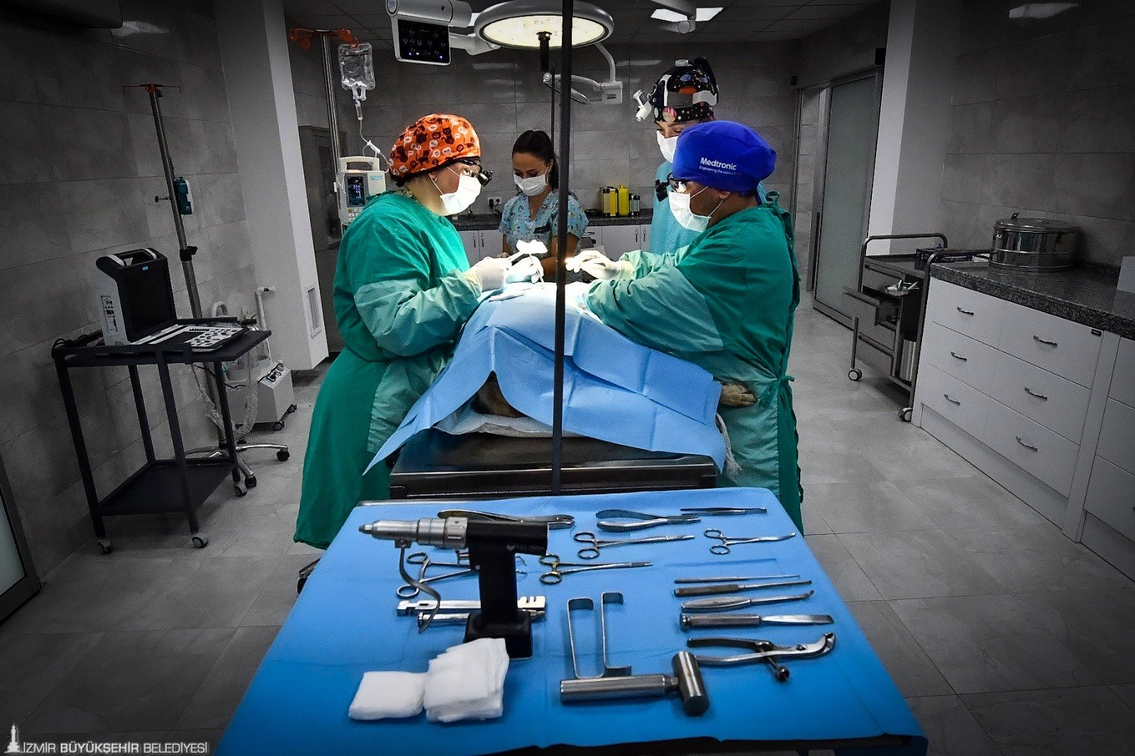 Ocak ayında hizmete giren hastanede 107’si köpek, 7’si kedi, 4’ü de kuş, güvercin ve tavşan olmak üzere 118 hasta hayvanı tedavi altına aldıklarını anlatan Veteriner Hekim Oğuz Emre Özlülerden, “İlk muayeneden sonra teşhisi koyuyor ve gerekli tedavi için tüm imkanlarımızı seferber ediyoruz. Çiğli Belediyesi’nden hastanemize getirilen 50-55 kilogram civarında bir kangal köpeğin ameliyatını başarıyla yaptık. Dirsek ekleminde çıkık ayrıca kaval kemiğinde de açık kırık vardı. Bu kiloya sahip bir köpeğin ameliyatı zorlu olur. Ameliyat sonrasındaki süreç de meşakkatli olur. Biz kaval kemiğine plaka yönetimi ile operasyon yaptık. Çıkan dirsek eklemini de açık redüksiyon yöntemi dediğimiz müdahale ile yerine oturttuk. Ardından burayı atele aldık ve stabil hale getirdik. Yaklaşık 3 buçuk saatlik bir ameliyattı. Başarıyla tamamladık” diye konuştu.