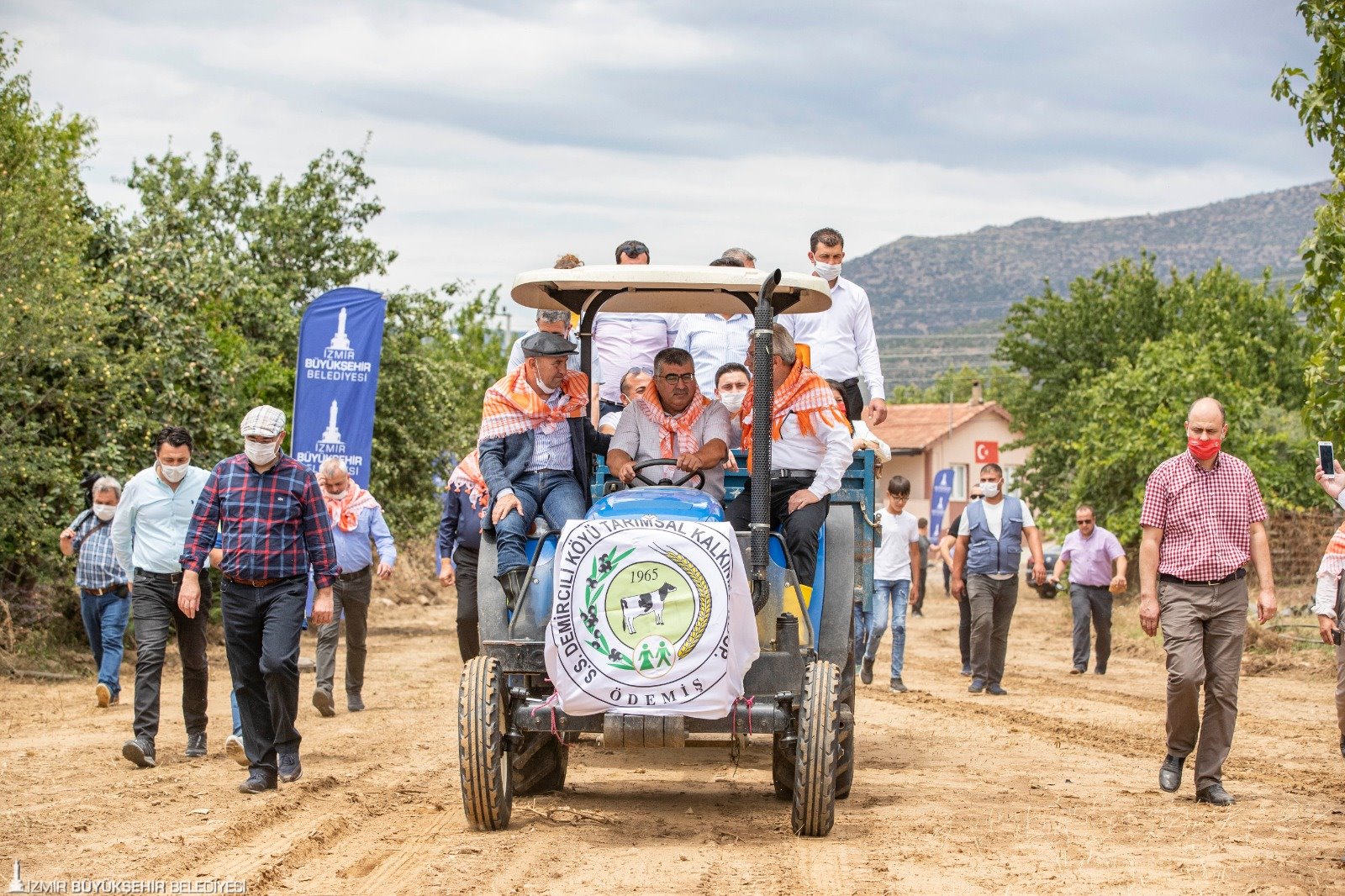 Ödemiş'te Demircili Köy Meydanı'nda düzenlenen törende konuşan İzmir Büyükşehir Belediye Başkanı Tunç Soyer, salgının bize verdiği en önemli derslerden birinin doğayla uyumlu tarım yapmak olduğunu söyledi. Başkan Soyer, "Suyumuza, toprağımıza sahip çıkmak mecburiyetindeyiz. Bunun için yerli tohuma dönmek lazım. Seferihisar'da bir avuçla başlayan hikayede karakılçık buğdayı önce saksıda yetişti, sonra bir bahçeye ardından yüzlerce dönümlük tarlaya ulaştı. Şimdi Menemen'in ve Küçük Menderes'in ovalarına geçti. Gördük ki su istemiyor. Tüketici için tercih edilen bir ürün, glüteni düşük, dayanıklı, lezzetli ve sağlıklı. Büyükşehir Belediye Başkanı olarak şunun sözünü veriyorum. Devletin verdiği taban fiyatının iki misliyle karakılçık buğdayını alacağız. Neden? Karakılçık hem size hem kentliye ekmek olacak. Sağlıklı, temiz, güvenilir bir tohum olduğu, bu toprakların gerçek ürünü olduğu için karakılçık buğdayına sahip çıkacağız" şeklinde konuştu.