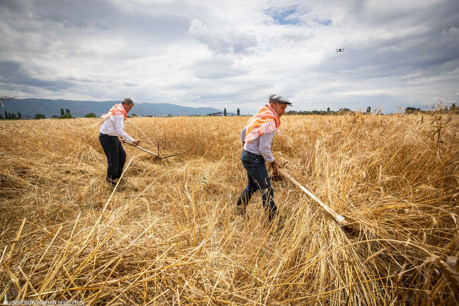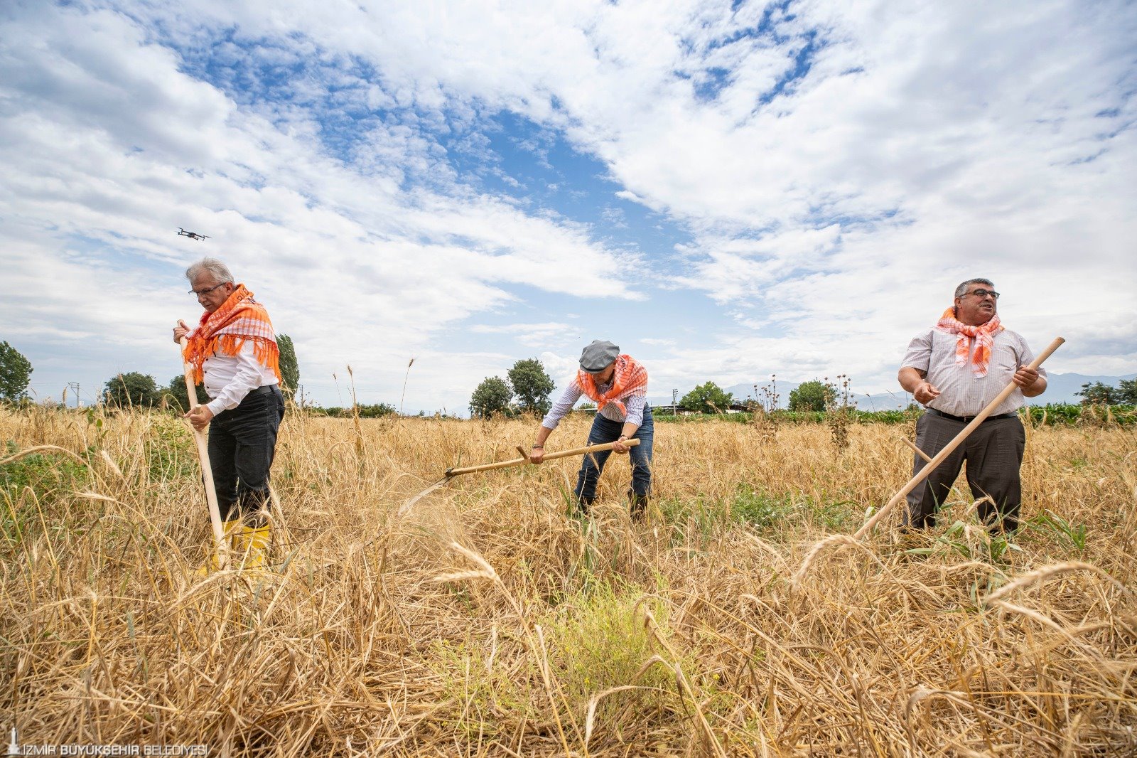 İzmir Büyükşehir Belediyesi ata tohumu karakılçık buğdayı üretimini yeniden yaşama geçirdi. İthal tohum yerine yerli tohum üretmek ve buğday üreticilerine destek sağlamak için Menemen, Ödemiş ve Tire’de geçtiğimiz yıl ilk kez toprakla buluşan karakılçık buğdayında hasat başladı. "Başka bir tarım mümkün" diyerek çalışmalarını sürdüren İzmir Büyükşehir Belediye Başkanı Tunç Soyer, Ödemiş ve Tire’ye giderek karakılçık buğdayının hasat çalışmasına katıldı. Ödemiş'in Demircili Köyü'nde Demircili Kooperatifi'nin üretim tesisini gezen Başkan Soyer, buradan traktörle tarlaya geçerek karakılçık buğdayı biçti. Başkan Soyer'e Ödemiş Belediye Başkanı Mehmet Eriş ve eşi Selma Eriş ile İzmir Köy-Koop Birlik Başkanı Neptün Soyer eşlik etti. Başkan Soyer, Ödemiş'in ardından Tire'ye geçti. Burada Tire Belediye Başkanı Salih Atakan Duran ve eşi Necibe Duran ile birlikte ilk hasadı gerçekleştirdi.