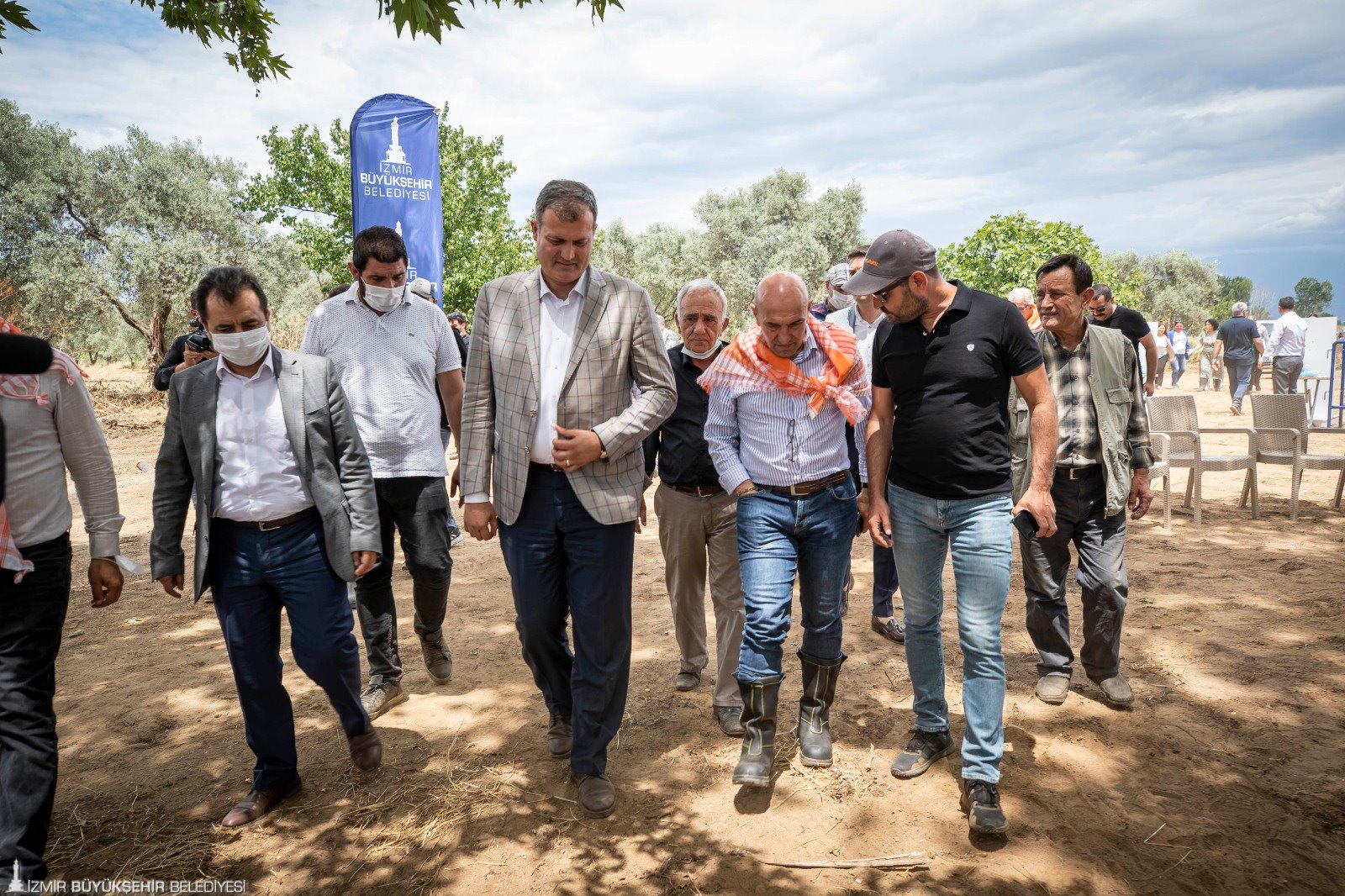 Ödemiş Belediye Başkanı Mehmet Eriş, "Tunç Başkanımızın Seferihisar'da ata tohumlarıyla attığı tohum yeşerdi. Onun yeşerttiği tohumlar bölgemize kadar geldi. Bu yakılan ışığı Türkiye'nin dışa bağımlılığına bir tepki olarak yorumlamak gerekir. Kentimize sahip çıkma adına bunu yapıyor. Aynı Atatürk'ün Atatürk Orman Çiftliği'ni kurduğu gibi tüm Türkiye'ye örnek olarak bizi yüreklendirdiği için teşekkür ediyorum. Tarlalarımızı sürekli ziyaret edip kadınlarımıza örnek olan İzmir Köy-Koop Birliği Yönetim Kurulu Başkanı Neptün Soyer'e ayrıca teşekkür ediyorum." dedi. Pandemi sürecinde tarlalarda kalan baklaları alan, hasadı başlayan bezelyeye sahip çıkan İzmir Büyükşehir Belediyesi'nin desteğinin çok önemli olduğunu söyleyen Eriş, "Patates üreticilerimiz zor durumda. Başkanımız patates alımında da bize destek vereceğinin sözünü verdi. Çok mutlu olduk" diye konuştu.