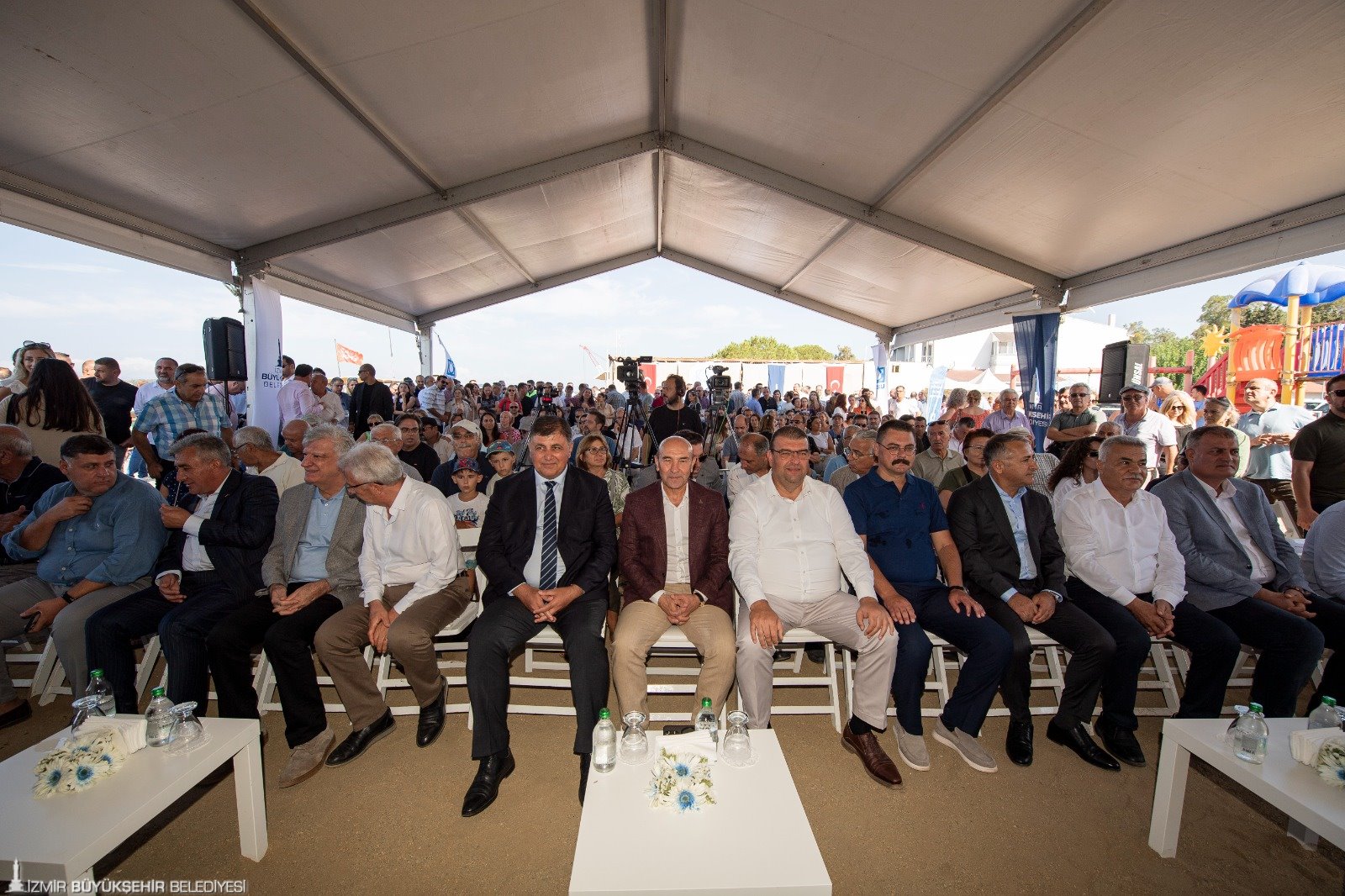 Temelini attıkları projenin açılışını da kısa süre içerisinde yine hep birlikte yapacaklarını ifade eden Başkan Soyer, “Seferihisar Atıksu Arıtma Tesisi’nin deşarj noktasını kıyıdan bir kilometre öteye taşıyoruz. 95 milyon yatırım bedeliyle gerçekleştireceğimiz projemiz, hem Kocaçay Deresi üzerindeki yükü kaldıracak hem de vatandaşlarımızın bugün olduğu gibi gelecekte de sahilden gönül rahatlığıyla yüzmesini sağlayacak. Seferihisar ilçemize yaptığımız yatırımlar elbette bununla sınırlı değil. Kocaçay Deresi’nde 10 yıldır Seferihisarlılar ile birlikte hayalini kurduğum proje nihayet hayata geçiyor. Şuan atıl durumda olan Kocaçay Deresi’nin çevresini 88,5 milyon liralık yatırımla İzmir’in en büyük yeşil alanlarından birine dönüştürüyoruz. 136 bin metrekarelik bu yeşil alan Seferihisar ve çevresine nefes aldıracak. Parkımızı 2024 yılının ilk aylarında hizmete açacağız. 2019 yılından bu yana, İZSU Genel Müdürlüğümüz eliyle Seferihisar’a 400 milyon liralık yatırım yaptık. İzmir’i ve Seferihisar’ı daha iyiye taşımak için, İzmirlilere güvenli yaşam alanları sunmak için, tüm engelleri aşarak İzmir’in altyapısını baştan sona güçlendirmeye sonuna kadar devam edeceğiz. Bizler mazeret değil icraat üretmek için seçildik. Ne ülkemizin içinden geçtiği ekonomik kriz, ne de yaptıklarımızın siyasetin sığ sularına çekilme çabası bu samimi gayretimize engel olamadı, bundan sonra da olamayacak” şeklinde konuştu.