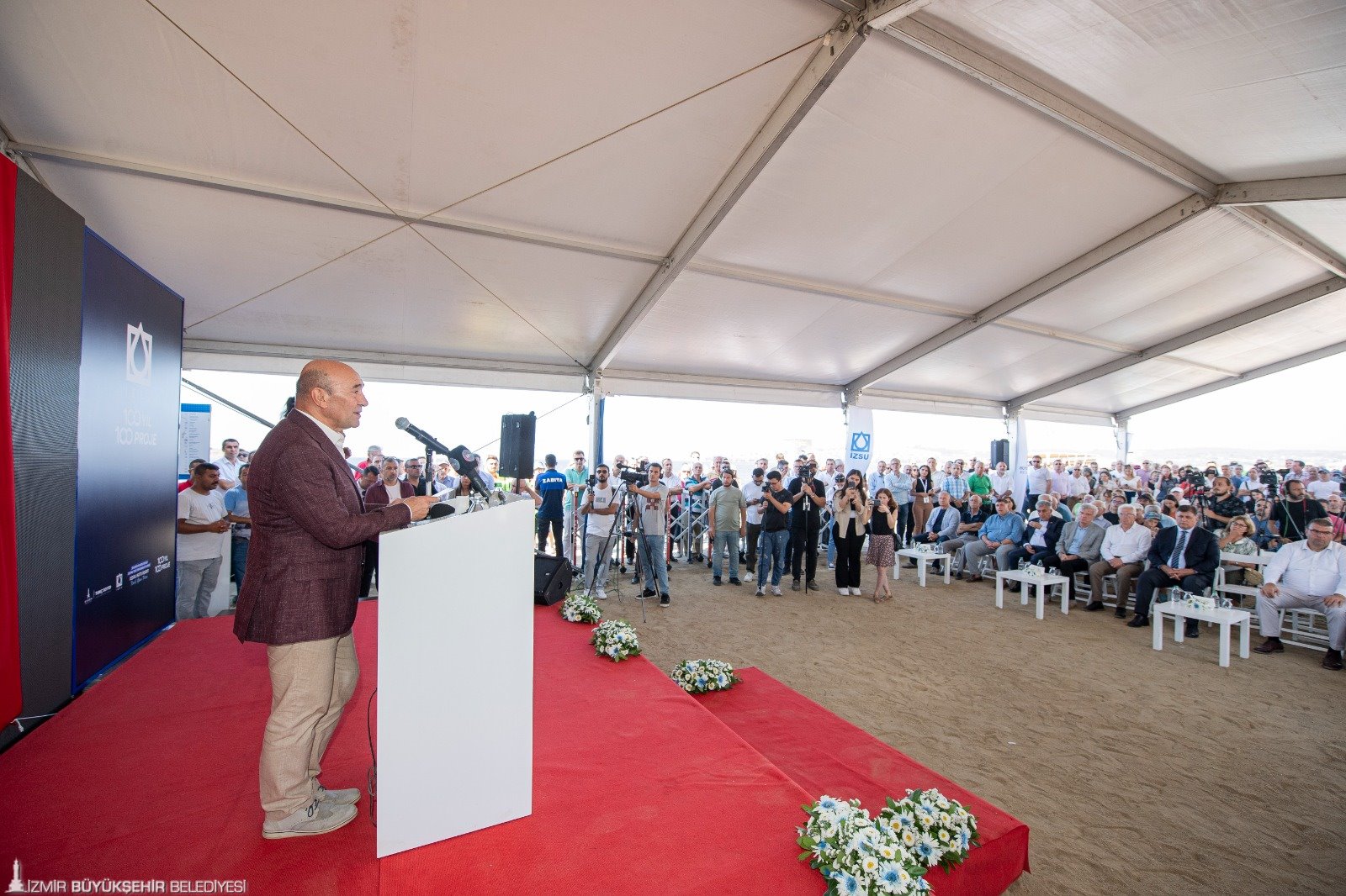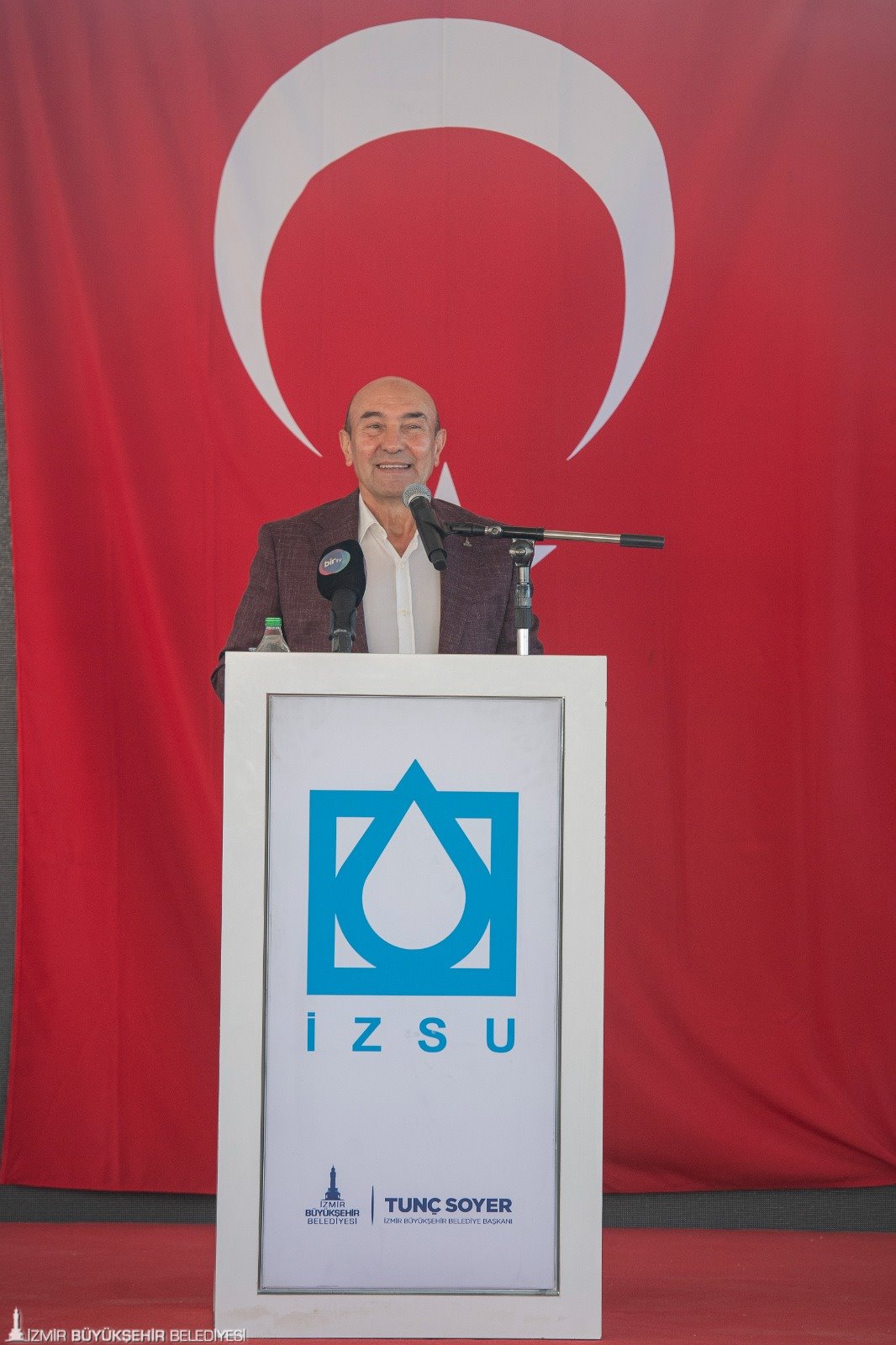 İzmir’in su varlığını koruyacak ve İzmirlilerin suya erişimini nesiller boyunca güvence altına alacak yatırımlara Cumhuriyet gibi, bu topraklardaki geleceğin teminatı olarak baktıklarını ifade eden İzmir Büyükşehir Belediye Başkanı Tunç Soyer, “Dört yıl önce göreve geldiğimde vatandaşlarımızdan gelen talepler doğrultusunda şehrimizin altyapı sorunlarının röntgenini çektik. Gördük ki yaklaşık dört buçuk milyon nüfusuyla Türkiye’nin en büyük üçüncü şehri olan İzmir’in, altyapı konusunda birçok eksiği var. Bu nedenle beş yıllık hizmet süremiz içinde altyapı yatırımlarına öncelik verdik. Bu irademiz, İzmir Büyükşehir Belediyesi kaynaklarının vitrin projelerine değil, altyapıya harcanması, yani toprağın altına gömülmesi anlamına geliyor. Aldığımız kararın hiç şüphesiz ki günübirlik siyaset açısından neyi ifade edebileceğini iyi biliyorum. Fakat biz kısa vadeli siyasi menfaatlerimiz yerine çocuklarımızın, torunlarımızın, tüm İzmirlilerin güvenli yaşam hakkını seçtik ve bunun gereğini yerine getirdik. Son dört yılda İzmir’in gelmiş geçmiş en büyük altyapı seferberliğini başlattık. İzmir'in yıllardır halı altına süpürülen sorunlarını beş yıllık görev süremizin odağına yerleştirdik” dedi.