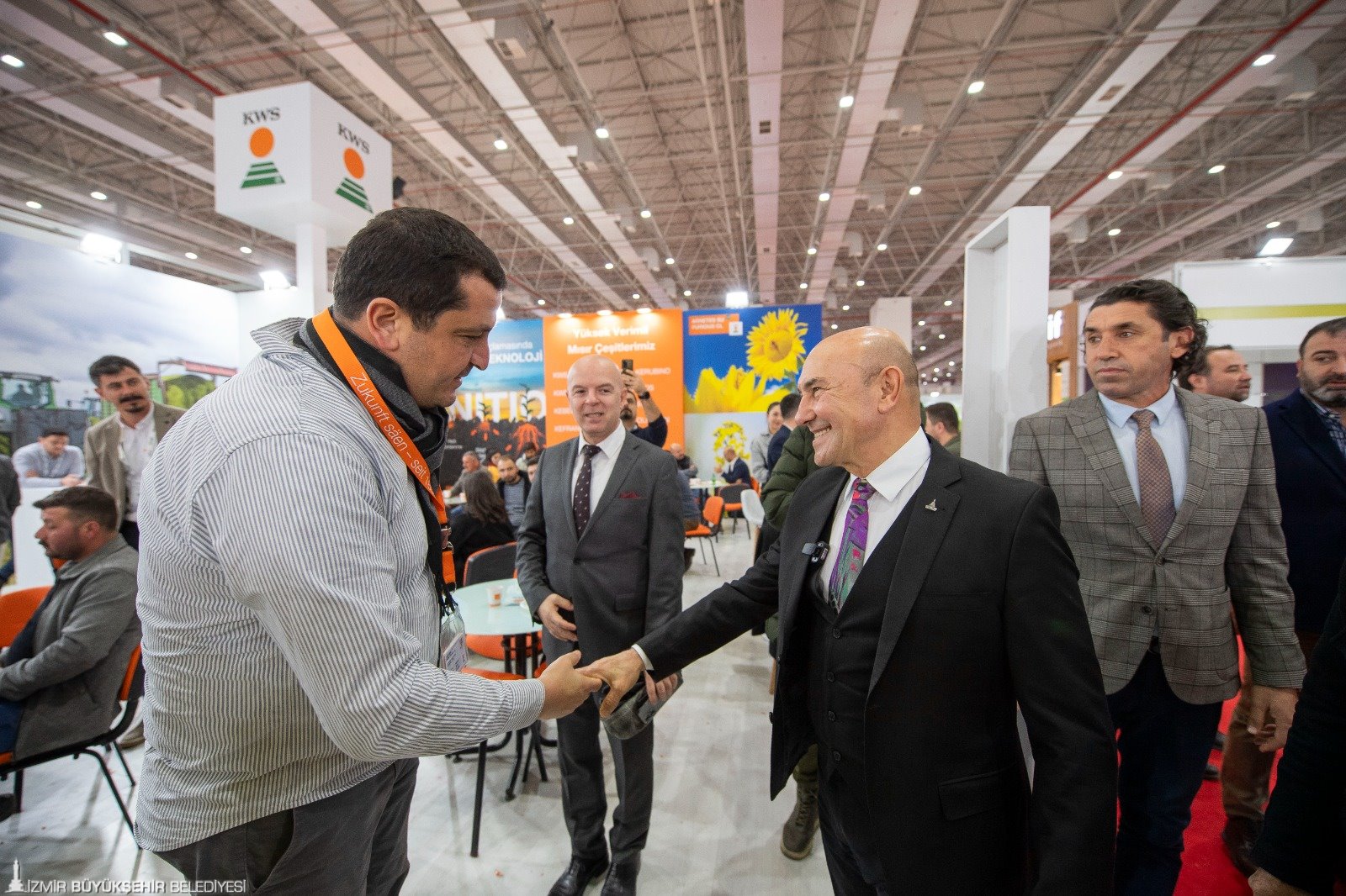 Büyük bir yoğunluğun olduğu fuarı ziyaret eden İzmir Büyükşehir Belediye Başkanı Tunç Soyer; Orion Fuarcılık Yönetim Kurulu Başkanı Fatih Tan, İZFAŞ Genel Müdürü Canan Karaosmanoğlu Alıcı, İzmir Büyükşehir Belediyesi Genel Sekreteri Barış Karcı ve bürokratlarla AGROEXPO’da katılımcılarla buluştu. Stantları gezen, vatandaşlarla fotoğraf çektiren Başkan Tunç Soyer, “Başarılı ve bereketli bir fuar diliyorum” dedi.