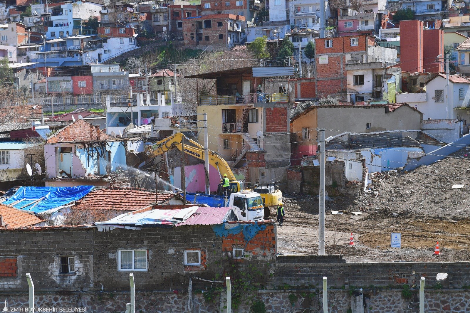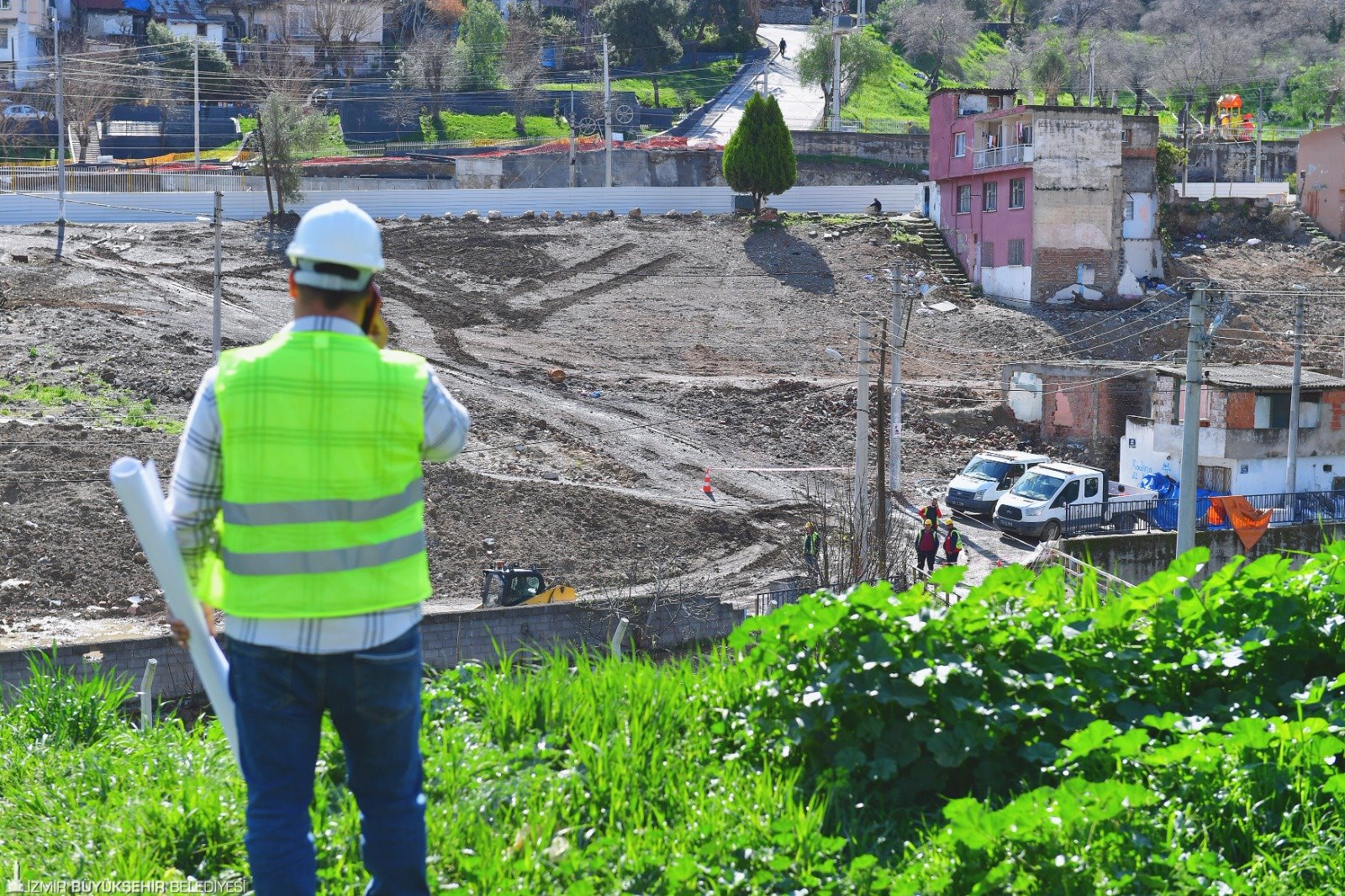 İzmir Büyükşehir Belediye Başkanı Tunç Soyer’in çabalarıyla kentin 2026’da ev sahipliği yapmaya hak kazandığı Uluslararası Bahçe Bitkileri EXPO’su (Botanik EXPO 2026) için Yeşildere Vadisi’nde hazırlıklar sürüyor. Atatürk Maskı’nın altından başlayarak İZBAN hattı ile Meles Deresi ve Yeşildere Caddesi arasında kalan bölgeyi bambaşka bir görüntüye kavuşturacak proje alanında kamulaştırılan binaların yıkımı devam ediyor. Başkan Tunç Soyer, Yeşildere’ye giderek incelemelerde bulundu.