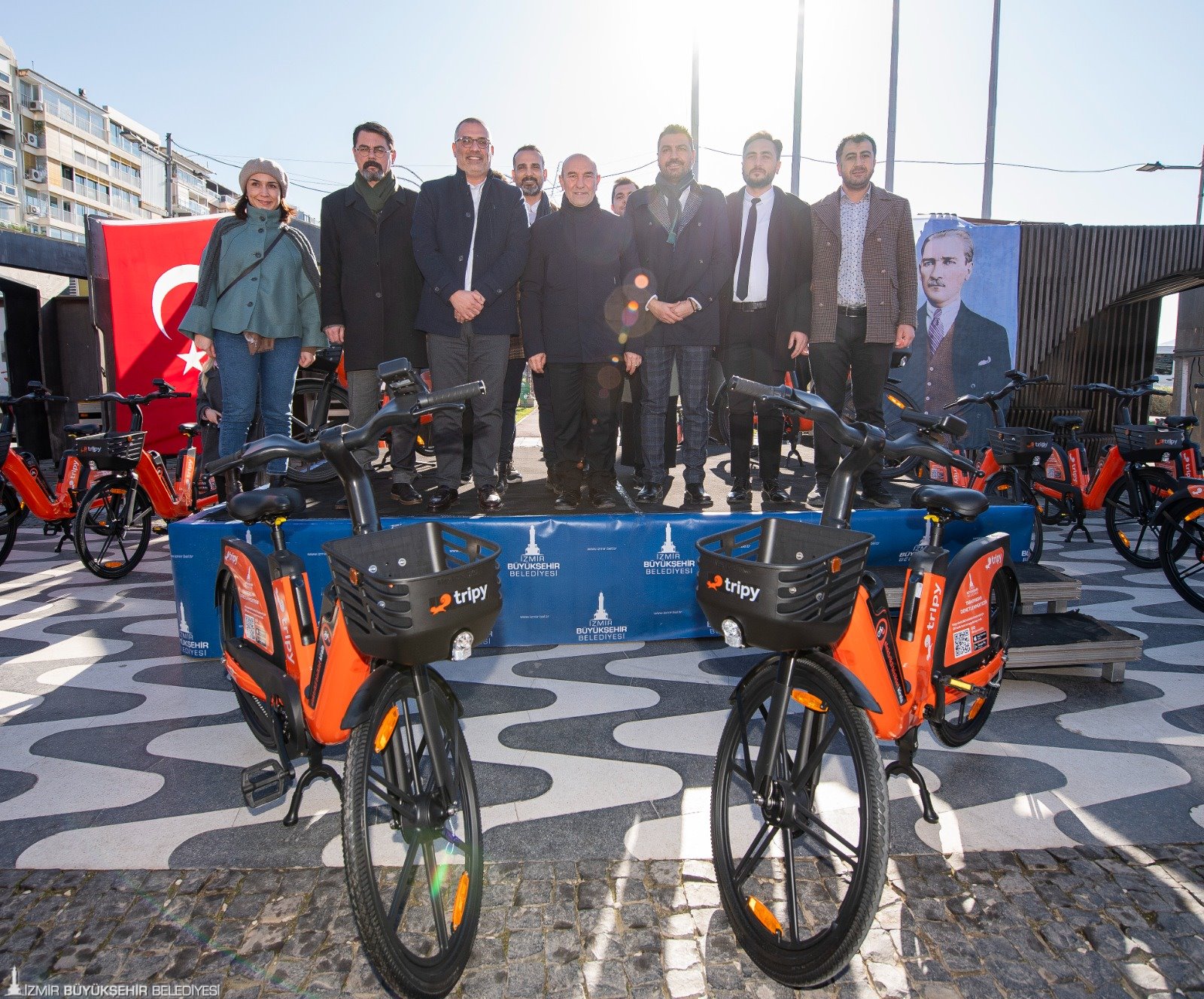İzmir Büyükşehir Belediye Başkanı Tunç Soyer’in kent ulaşımında bisiklet kullanımını artırma hedefi doğrultusunda daha uzun mesafeli seyahatlerde rahatlıkla kullanılabilecek “Elektrik Destekli Akıllı Bisiklet Paylaşım Sistemi” hizmete alındı. İzmir Büyükşehir Belediye Başkanı Tunç Soyer, elektrik destekli akıllı bisikletle tören alanına geldi. Törene Başkan Soyer’in yanı sıra MİA Teknoloji Yönetim Kurulu Başkanı Özgür Çivi, İzmir Büyükşehir Belediyesi Genel Sekreteri Barış Karcı, meclis üyeleri, sivil toplum kuruluşlarının ve siyasi partilerin temsilcileri ve yurttaşlar katıldı.