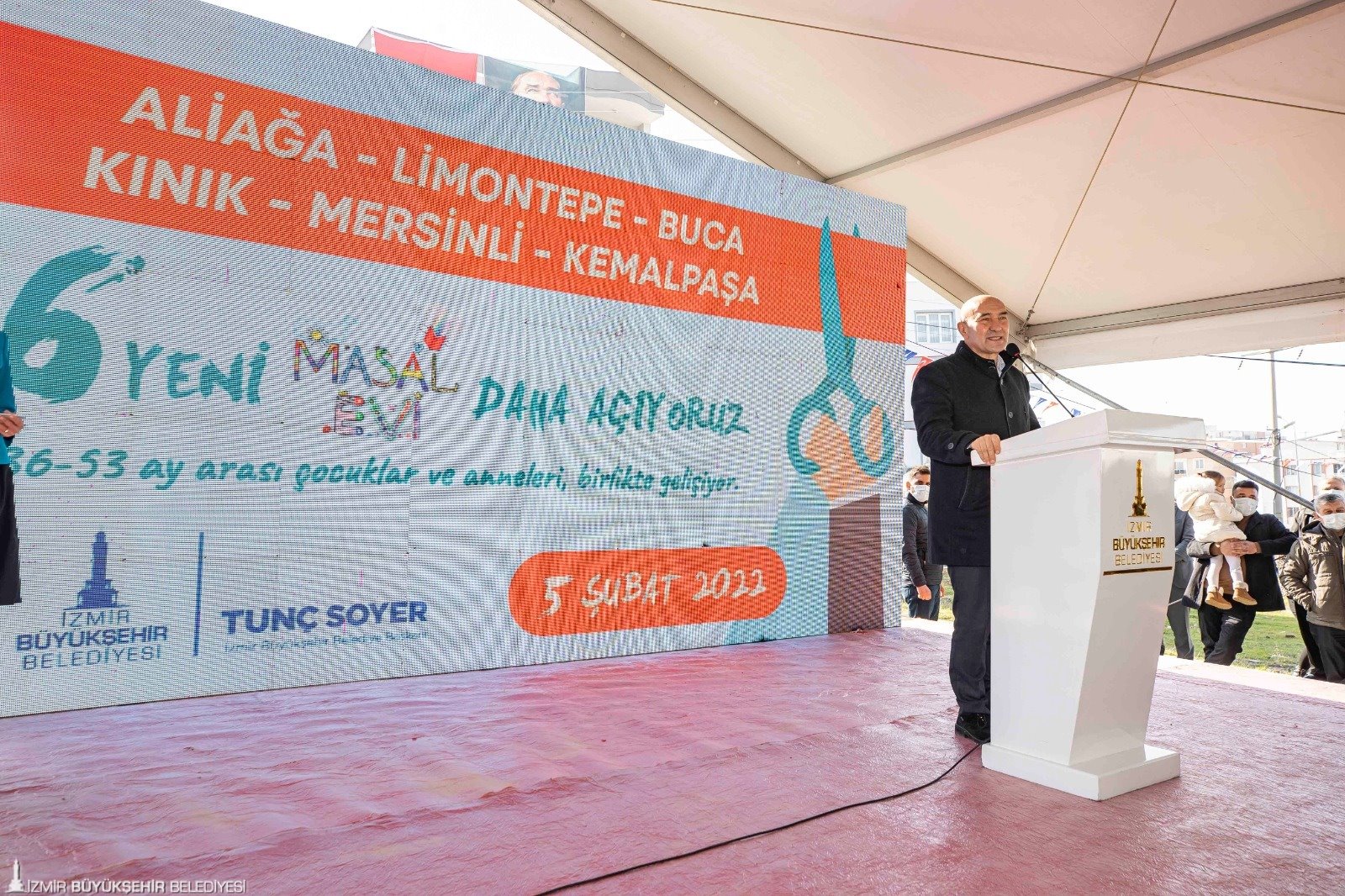 14 Şubat'ta Buca Metrosu'nun temelini atacaklarını ifade eden İzmir Büyükşehir Belediye Başkanı Tunç Soyer, “Türkiye'ye örnek olmaya, ilham vermeye devam edeceğiz. Masal Evleri, bir yandan çocuklarımızın öğrendiği, eğlendiği, oyun oynadığı mekanlar, bir yandan da annelerinin meslek öğrendiği, çeşitli konularda danışmanlık hizmeti aldığı, psikolojik, sosyolojik birçok açıdan kendilerini beslediği, öğrendiği ve istihdama katıldığı mekanlar. Diğer kreşlerden, anaokullarından en önemli farkı, sadece çocuklarımız için okuma öğrenme alanları değil aynı zamanda anneleri için de istihdama katılmalarına imkân veren, eğitimlerin yapıldığı mekanlar... On iki tane açtık. Bizim seçimlerden önce vaadimiz yirmi taneydi. Ama yirmi beş Masal Evi'ni İzmirlilerle buluşturmuş olacağız” dedi.