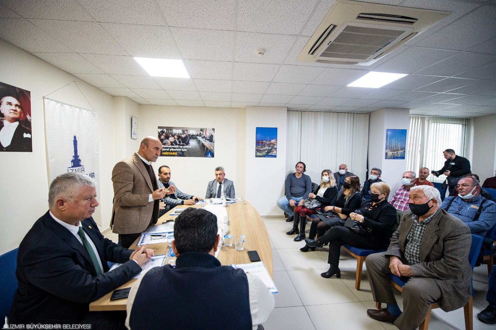Başkan Soyer muhtarlarla buluştuğu toplantıda “Üç senede memleketin başına gelmemiş ne kadar felaket varsa hepsini yaşadık. Pandemi, deprem, tsunami, hepsini gördük. Üç yıla yakın zaman sürecinde bin 200’den fazla muhtarımızla yüz yüze bir araya geldik. Ben muhtarlarımızı belediye çalışanı gibi görüyorum. Yine onlardan gelen talepleri dinleyerek yola devam edeceğiz. Muhtarlarımızın söylediklerini, Büyükşehir Belediyesi bürokrasisinin programı haline getiriliyor” dedi.