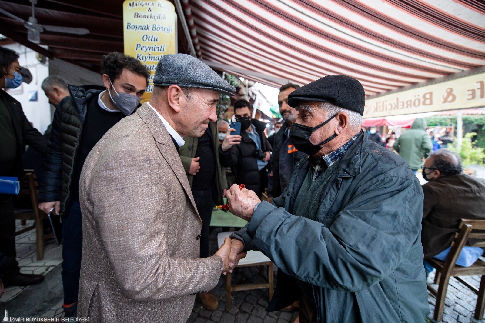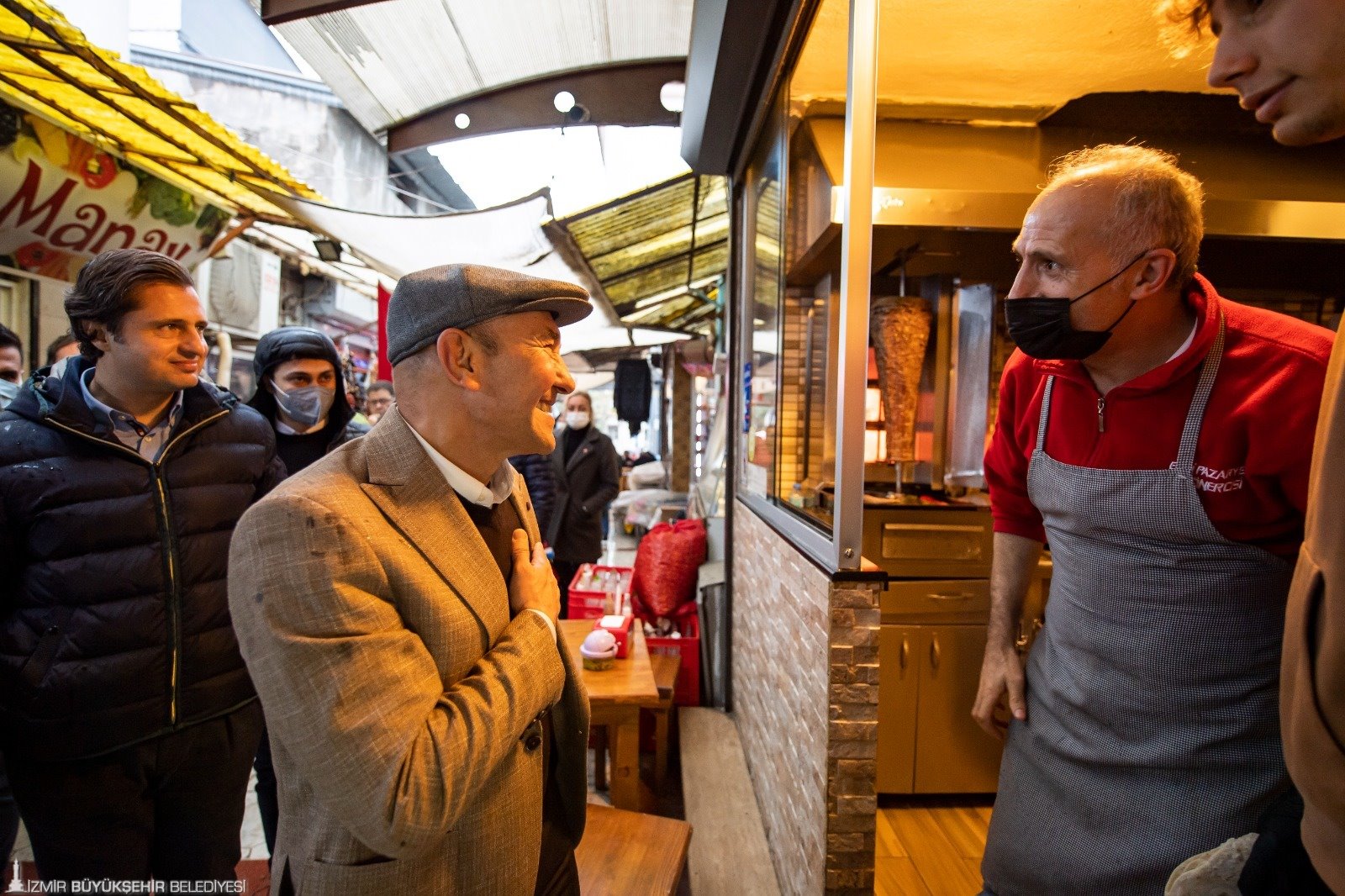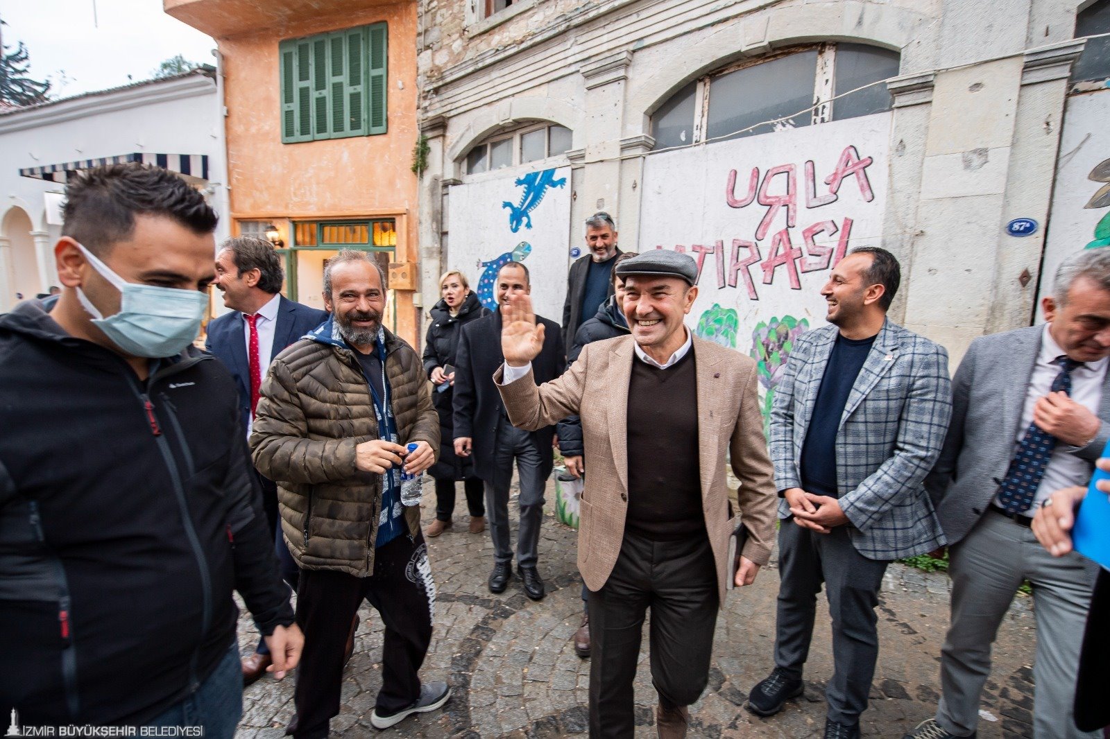 İzmir’in tüm ilçelerinde muhtarlarla bir araya gelerek sorunları tespit eden, proje ve yatırımları yerinde inceleyen İzmir Büyükşehir Belediye Başkanı Tunç Soyer, 2022 yılının ilk ziyaretini Urla’ya yaptı. İzmir Büyükşehir Belediyesi Urla Yerel Hizmetler Binası’nda ilçedeki muhtarlarla buluşan Başkan Tunç Soyer talepleri dinleyip not aldı. Başkan Soyer’e İzmir Büyükşehir Belediyesi Başkan Vekili Mustafa Özuslu, CHP İzmir İl Başkanı Deniz Yücel, İZBETON Genel Müdürü Heval Savaş Kaya, CHP Urla İlçe Başkanı Hakan Özbadur, İzmir Büyükşehir Belediyesi Urla Yerel Hizmetler Şube Müdürü Yener Kırmızı eşlik etti. Başkan Soyer, Urla’da esnafı da ziyaret etti.