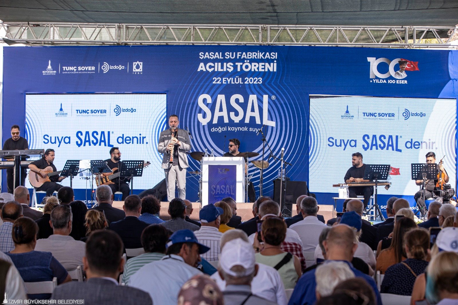 Son nesil pet ve cam şişe dolum makineleri satın alınarak yenilenen Şaşal Köyü’ndeki fabrikanın açılış töreninde Başkan Tunç Soyer’e eşi Neptün Soyer, Büyükşehir Belediyesi Başkan Vekili Mustafa Özuslu, Genel Sekreter Barış Karcı, Menderes Belediyesi Başkanı Erkan Özkan, Torbalı Belediye Başkanı Mithat Tekin, Gaziemir Belediye Başkanı Halil Arda, Cumhuriyet Halk Partisi (CHP) İzmir İl Başkanı Şenol Aslanoğlu, CHP İzmir Milletvekilleri Rıfat Nalbantoğlu, Murat Bakan, İZSU Genel Müdürü Ali Hıdır Köseoğlu, İzDoğa A.Ş. Yönetim Kurulu Başkanı Güven Eken ve Genel Müdürü Özkan Baturu, Büyükşehir Belediyesi bürokratları, meclis üyeleri, mahalle muhtarları ve vatandaşlar eşlik etti. Ayrıca açılışta ünlü klarnet virtüözü Hüsnü Şenlendirici ve orkestrası müzik şöleni yaşattı.