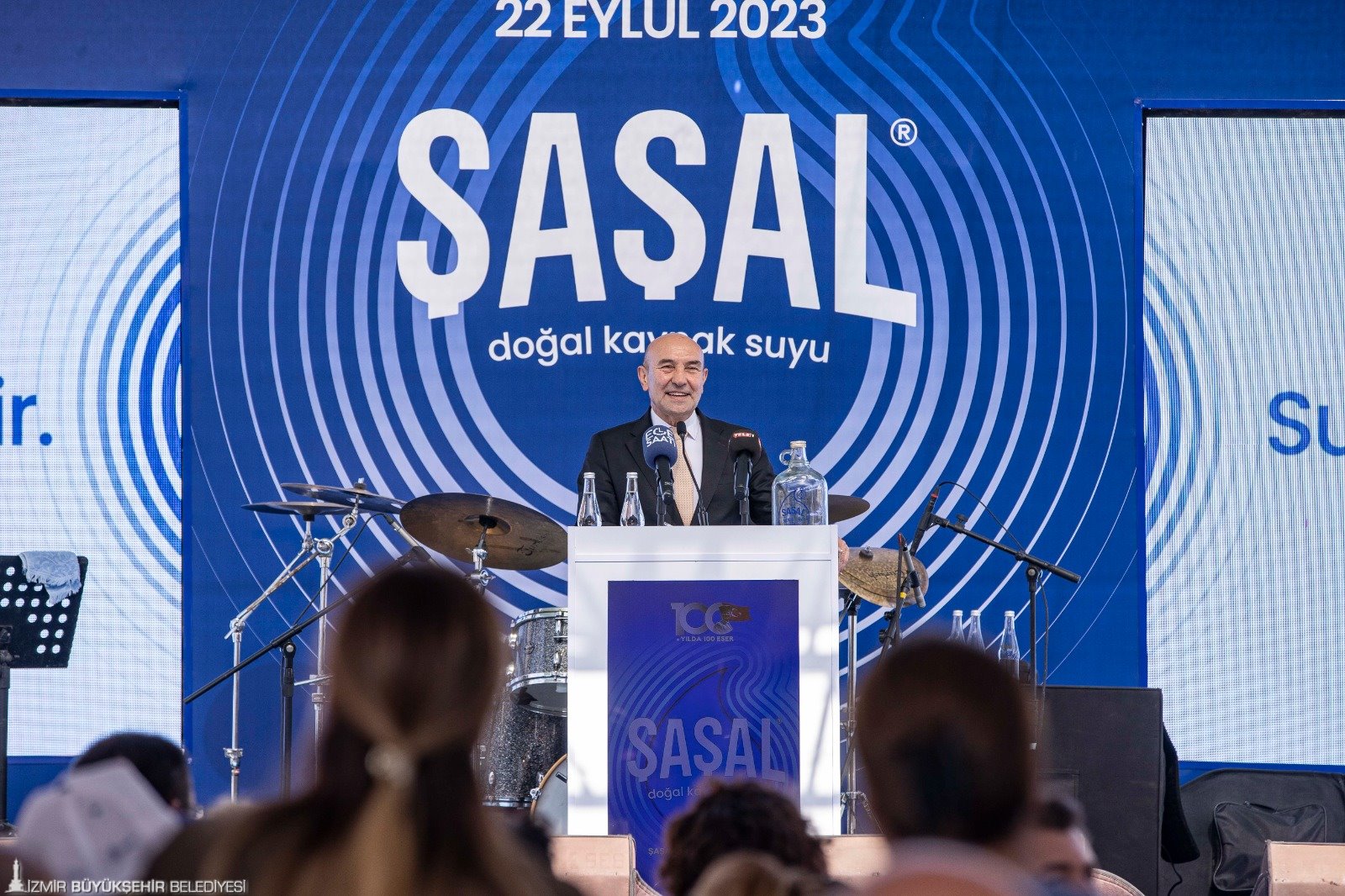 Bu suyun hikayesinin bir asır önceye gittiğini belirten Başkan Tunç Soyer, “Ulu Önderimiz Mustafa Kemal’in silah arkadaşlarından Kazım Dirik Paşa Kurtuluş Savaşı’nın ardından askerlik görevini bırakıp mülki hizmete geçtiğinde İzmir Valisi olarak göreve geliyor. Kazım Dirik’in şehrin içme suyu ihtiyacını karşılamak için oluşturduğu heyet hummalı bir çalışma başlatıyor. Bu dönemde keşfedilen Şaşal Suyu, 1932 yılında ilk kez şişelenerek, damacanalarla İzmir’e taşınıyor. Şaşal, lezzeti ve çok özel nefasetiyle kısa sürede İzmir’in ve hatta Türkiye’nin en çok tercih edilen su markası olmuş. Hatta Şaşal ismi ‘su’ ile özdeşleşiyor. Bu benim çocukluğumun geçtiği yıllarda da böyleydi. Bizim için Şaşal, su demekti. İşte o yüzden yeniden Türkiye ile buluşturduğumuz Şaşal Suyu anlatmak için bugün de ‘Suya Şaşal denir’ diyoruz. Bu fabrika bizim için İzmir’e kazandırdığımız yeni bir hizmet olmanın çok ötesinde bir anlam ifade ediyor. Şaşal bir ahde vefa projesidir. Bu fabrika Cumhuriyete vefamızdır. Atalarımıza vefamızdır. Ve çocuklarımıza bırakacağımız mirastır. İzmir’in çok uzun yıllardır atıl kalmış bu hazinesini yeniden hizmete sunmak çok büyük bir gurur kaynağı. 140 milyon liralık yatırımla yıkılma noktasına gelmiş olan bu tesisi, sadece 10 ayda yenileyerek ayağa kaldıran tüm ekip arkadaşlarıma sonsuz teşekkür ediyorum” ifadelerini kullandı.