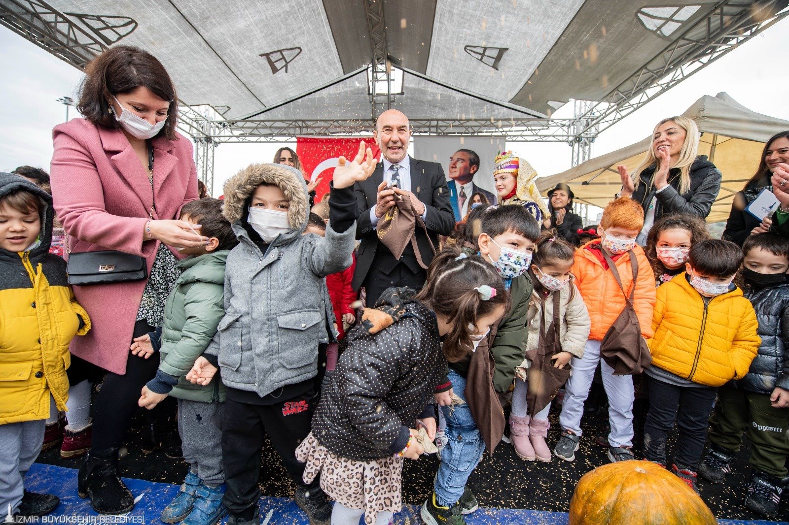 Seferihisar’daki ilk takas şenliğinde emanet edilen bir avuç karakılçığın bugün İzmir’de binlerce dekar alanda serpilerek boy verdiğini vurgulayan Başkan Soyer, sözlerine şöyle devam etti: “Bugün o bir avuç tohumdan 700 ton karakılçık buğdayını hasat edeceğiz. Üreticimizden de bu karakılçık buğdayını 7 liradan satın alacağız. Eylül 2022’de ise tohum mücadelemizi bir adım daha büyüteceğiz. Atalık tohumlarımızın koruyucusu küçük üreticilerimizi birer ihracatçı haline getirmek için dünyanın en büyük gastronomi fuarı Terra Madre’yi İzmir’e taşıyoruz. Terra Madre Anadolu fuarı İzmir’in refahını büyütmek ve adil paylaşımını sağlamak için attığımız en temel adımlardan biri. Önümüze konan tüm engellere rağmen ülkemizi yoksulluğun ve kuraklığın pençesinden kurtaracağız. Bunu, bir tohumun zekasını rehber edinerek onun sadelikten aldığı güçle başaracağız. Bizim mücadelemiz, borç batağına sürüklenen köylümüzün daha fazla ithal tohuma, ithal ilaca ve ithal yeme mecbur kalmaması için. Üreticimizin doğduğu yerde doyabilmesi için. Bu bereketli toprakların çoraklaşmaması için. Yoksulluğa son vermek için. Atalarımızdan bize emanet edilen bu eşsiz vatanı yaşatmak için. Çocuklarımıza çok güzel bir gelecek ve bir avuç tohum bırakabilmek için. Tohum Takas Şenliği’mizde bugün bir araya gelmemizin esas gayesi bu. Çünkü tohum köktür, gelenektir, gelecektir.”