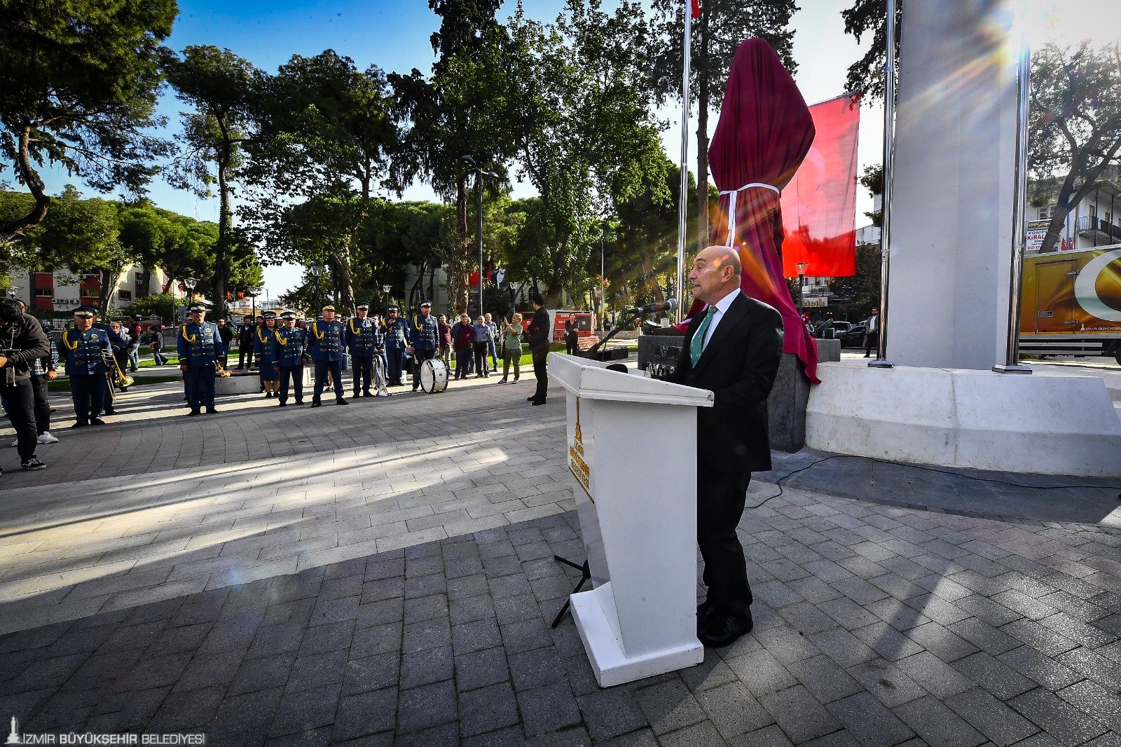 İzmir Büyükşehir Belediyesi tarafından yenilenen Tire’deki Cumhuriyet Meydanı'na yerleştirilen Atatürk heykeli, Türkiye Cumhuriyeti'nin 100'üncü kuruluş yıldönümü kutlamaları kapsamında açıldı. Mustafa Toygar tarafından yapılan heykelin açılışına İzmir Büyükşehir Belediye Başkanı Tunç Soyer ile eşi Neptün Soyer, CHP İzmir Milletvekili Rıfat Nalbantoğlu, Tire Belediye Başkanı Salih Atakan Duran, Torbalı Belediye Başkanı Mithat Tekin, Ödemiş Belediye Başkanı Mehmet Eriş, Beydağ Belediye Başkanı Feridun Yılmazlar, İzmir Büyükşehir Belediyesi Genel Sekreteri Barış Karcı, siyasi partilerin başkanları ile temsilcileri, sivil toplum kuruluşlarının, odaların, birliklerin başkanları ile temsilcileri, kooperatif ortakları, meclis üyeleri, muhtarlar ve vatandaşlar katıldı.