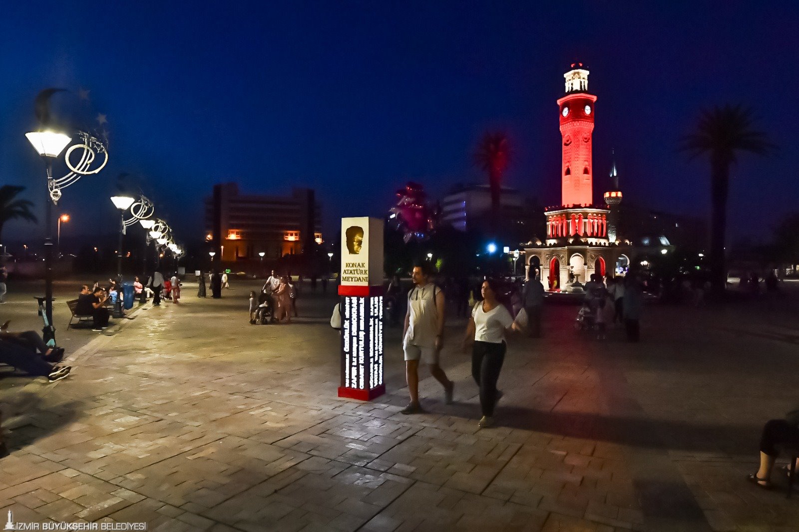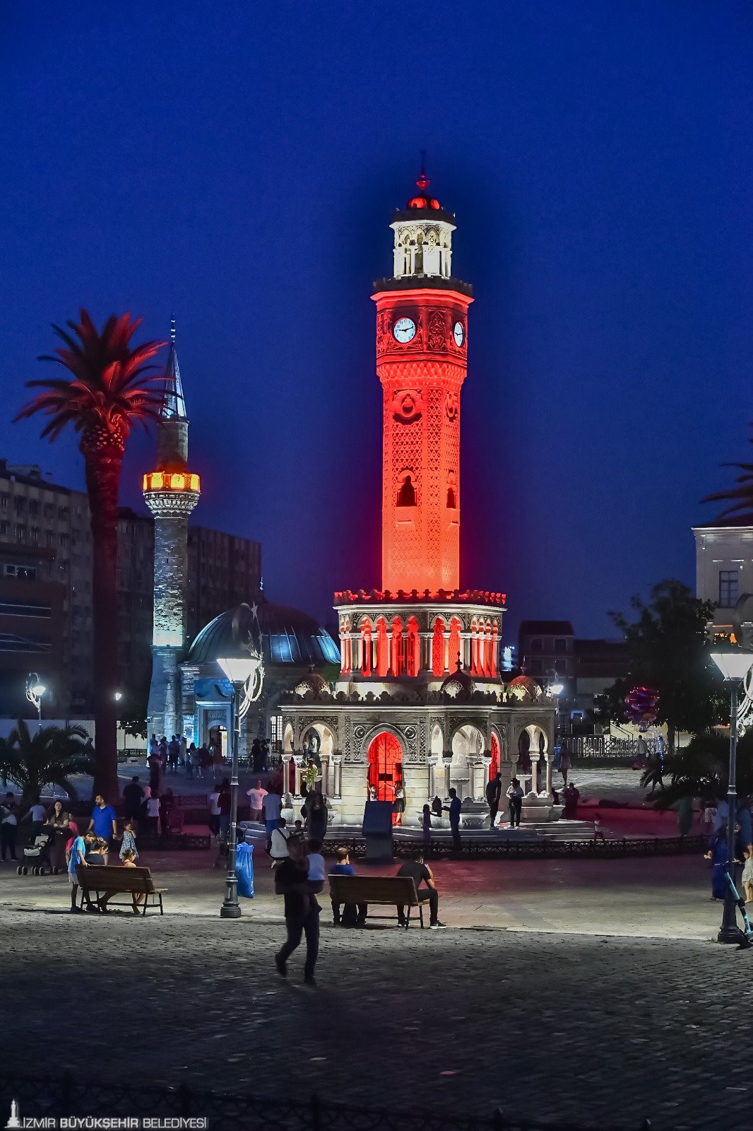 Gençler Foça’da Lozan’ı masaya yatırırken İzmir’in simgesi Saat Kulesi ise Türk Bayrağı’nın renklerine büründü. Lozan Barış Antlaşması’nın 100. yılı şerefine kırmızı beyaz ışıklarla aydınlatılan Saat Kulesi’nde İzmirliler hatıra fotoğrafları çektirdi. İzmir Büyükşehir Belediyesi, Lozan’ın 100. Yılı kutlamaları kapsamında tiyatrodan sergiye, konserden söyleşiye kadar çok sayıda etkinlik düzenleyecek.