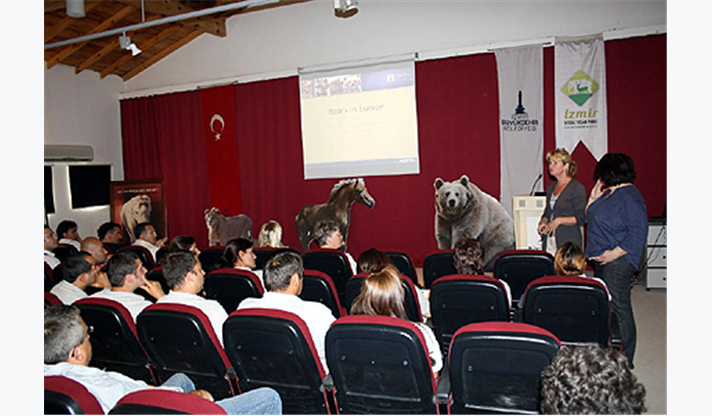 Dünyada soyu tükenmekte olan ve koruma altına alınan sloth bear (tembel ayı) üretim projesi çerçevesinde yapılan toplantıya Hollanda, Almanya ve Türkiye’den grubun temsilcileri, Çevre ve Orman Bakanlığı yetkilileri ile Türkiye’deki hayvanat bahçeleri uzmanları katıldı. Hollanda Rhenen Hayvanat Bahçesi’nden Jose Kok önderliğinde çalışmalarına devam eden EAZA Ayı Grubu, İzmir’deki toplantıda, dünya üzerinde yaşayan ayı türleri ve bu türlerin alt türlerenin korunması, sayılarının tespiti gibi konularda bilgi paylaşımında bulundu. EAZA üyeleri, İzmir Doğal Yaşam Parkı’nın dünyada soyu tükenmekte olan sloth bear (tembel ayı) üretimi projesine destek vermesini de istedi. Proje kapsamında bir çift “sloth bear” ın İzmir Doğal Yaşam Parkı’na gönderilmesi kararlaştırıldı. İzmir’deki uygun koşullarda üretilecek ayılar, Avrupa’daki diğer hayvanat bahçelerine gönderilecek ve bu ülkelerdeki vatandaşlar da doğadaki varlıkları giderek azalan bu türü tanıma imkanına sahip olacak.