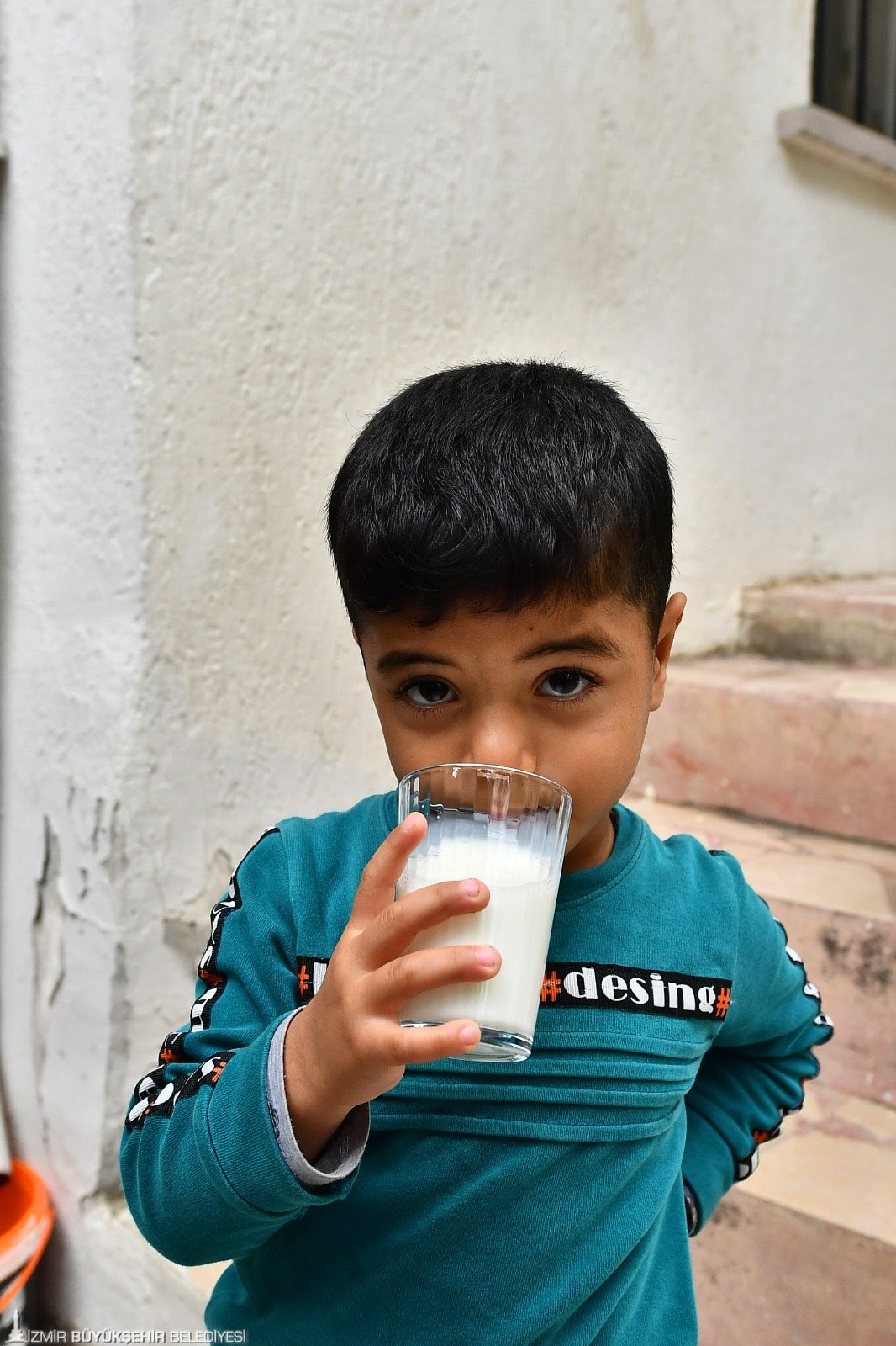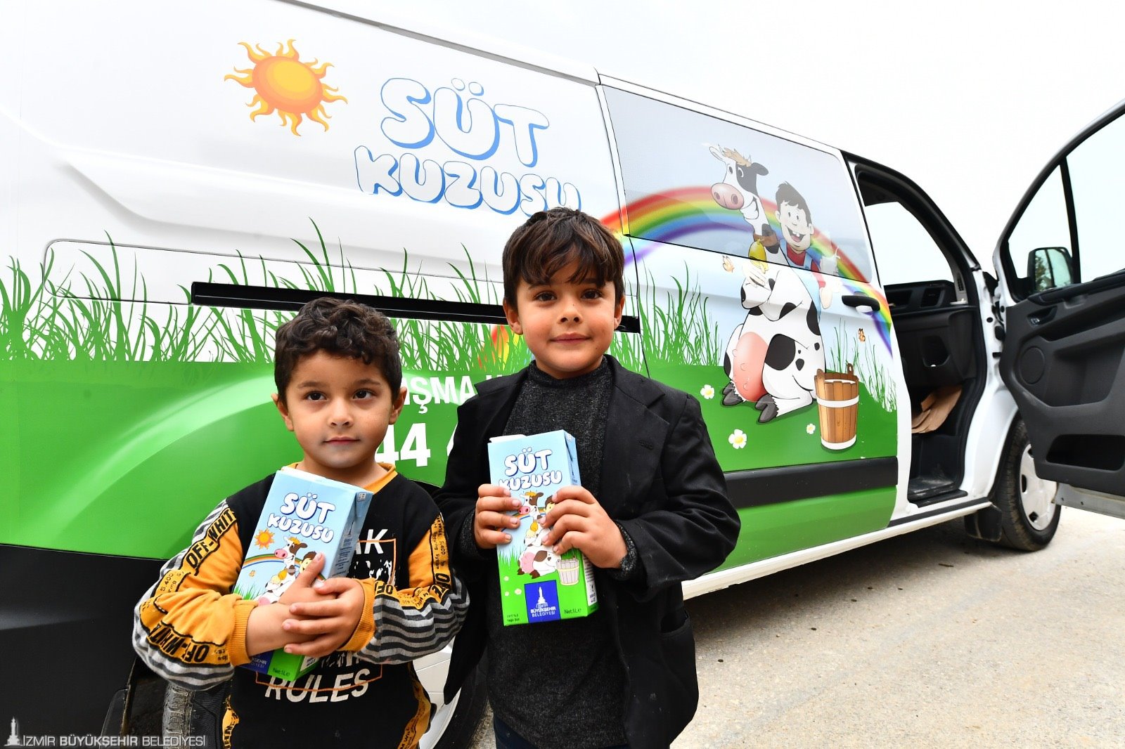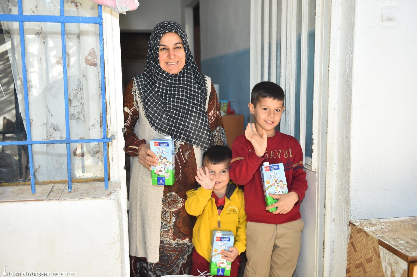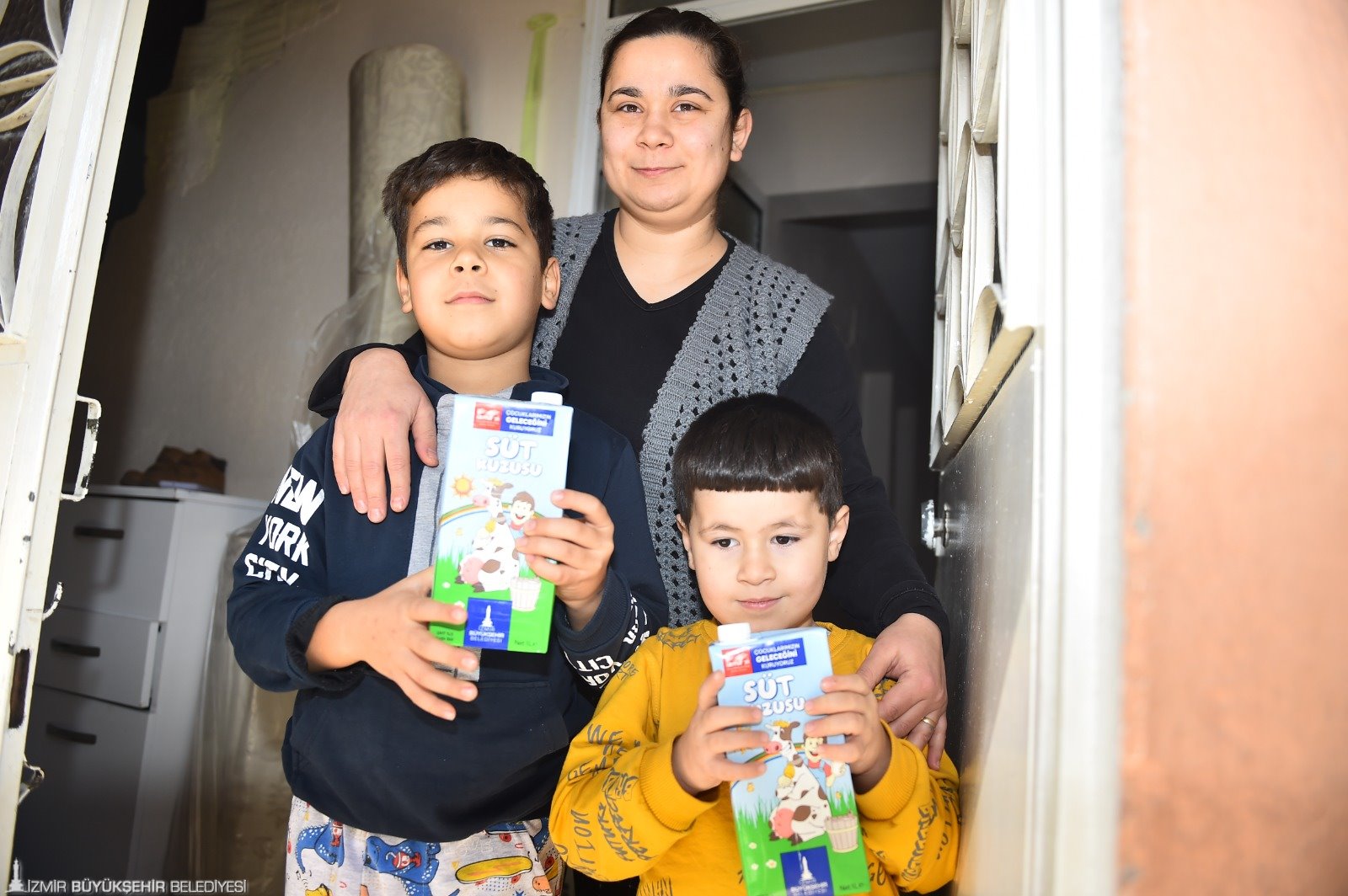 İzmir Büyükşehir Belediyesi altı üretici kooperatifinden satın aldığı sütü 58 farklı ekiple 619 mahallede kapı kapı dolaşarak dağıtıyor. Süt dağıtım personeli Deniz Engin Afacan, “Çocuklar artık bizi tanıyorlar. Bir bakıma biz büyüttük onları, yıllarca sütlerini biz temin ettik. Büyüttüğümüz çocukları görünce daha da mutlu oluyoruz. Üstelik onların kardeşlerine de süt veriyoruz. Bu projede olmaktan çok mutluyum. Çocuklara süt verirken kendi çocuklarıma süt vermişim gibi mutlu oluyorum” dedi.