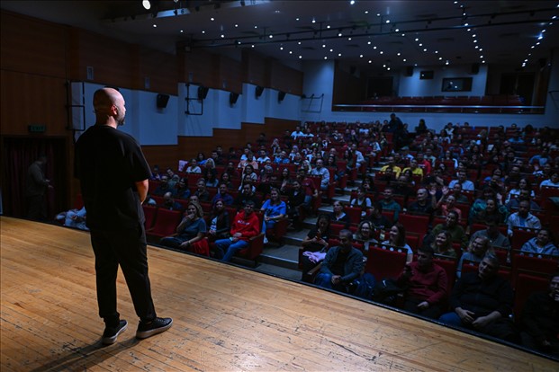 Kariyerine sosyal medya platformlarında paylaştığı skeçlerle başlayıp kısa sürede geniş bir takipçi kitlesine ulaşan Tahsin Hasoğlu, BKM Mutfak çatısı altında yaptığı tek kişilik gösterisiyle İZKİTAP kapsamında sahne aldı. İzmir Sanat’ta seyirciyle buluşan Hasoğlu, İzmir’de olmaktan duyduğu memnuniyeti dile getirdi. Gösterisinde, kadın-erkek ilişkilerinden aile dinamiklerine ve sinemadaki oyunculuk deneyimine kadar birçok konuyu esprili bir dille anlatan Hasoğlu, sahnedeki enerjisiyle izleyicilerin beğenisini topladı. Hasoğlu’nun, gösteriye gelirken fuarı gezerek ziyaretçilerle yaşadığı diyalogları ve “Bizans Oyunları” filmindeki rolü gibi kişisel deneyimlerini mizahi bir dille anlatması büyük ilgiyle karşılandı. İZKİTAP 2025, 26 Ekim’e kadar yayınevlerini, sahafları ve edebiyat dünyasının birbirinden değerli isimlerini İzmirli kitapseverlerle buluşturmaya devam edecek.