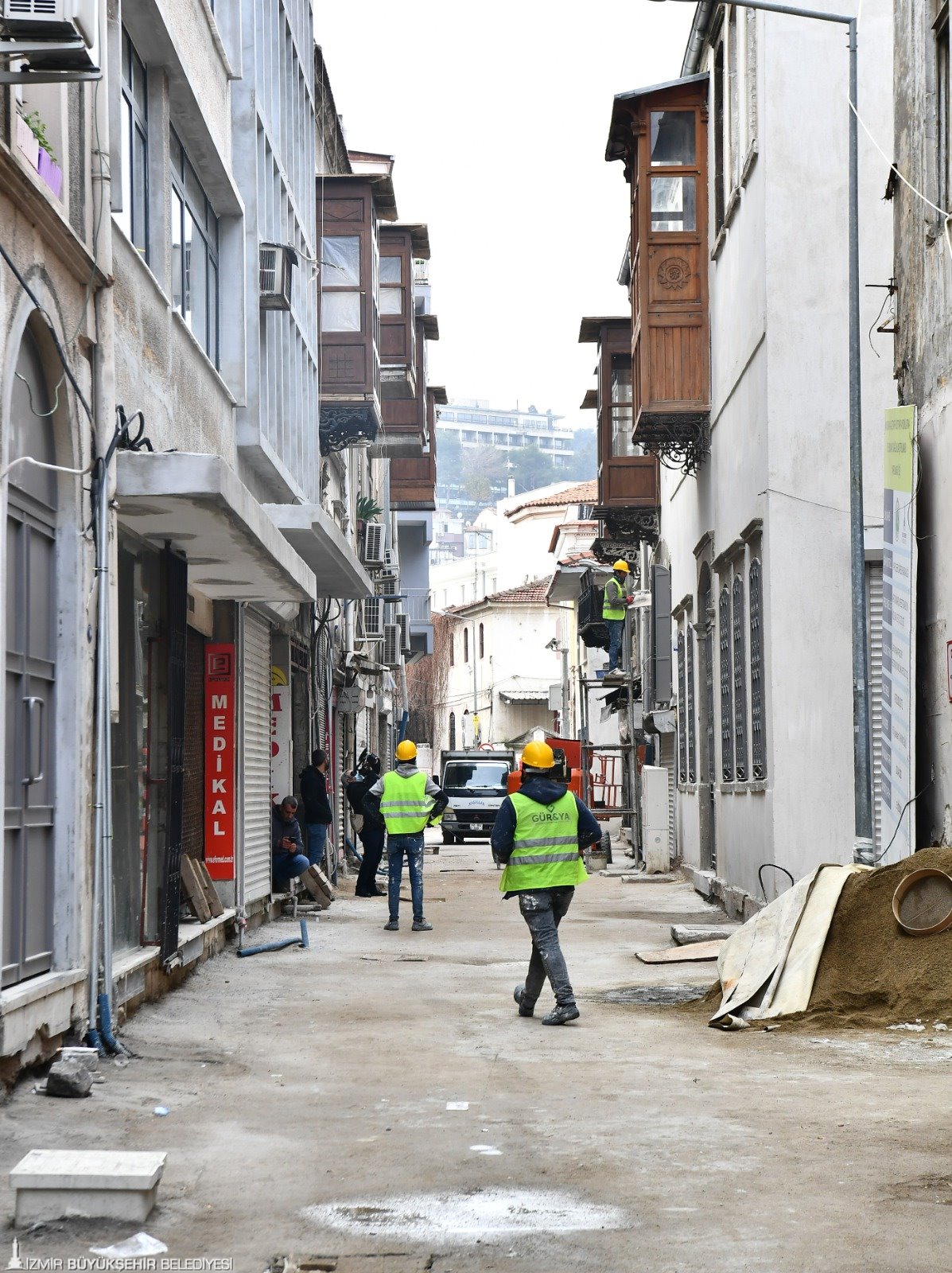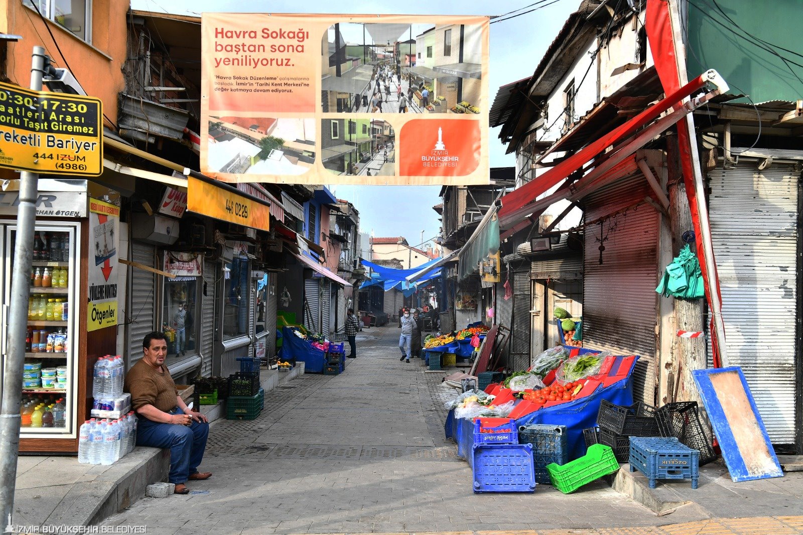 İzmir Büyükşehir Belediyesi tarihi dokusu ve özgün yapısı ile kentin en önemli bölgelerinden biri olan Havra Sokağı'nı yenileme çalışmalarını sürdürüyor. 136 metre uzunluğundaki sokakta yağmur suyu ve atık su hatları ayrıştırılarak su baskınlarının önüne geçildi. İçme suyu, enerji, iletişim, aydınlatma hatları ile zemin döşemeleri yenilendi. 67 dükkanın bulunduğu sokakta üst örtü çalışmaları sürüyor. Ürün satış stantları, tabelalar ve sokak aydınlatmaları yenilenecek. Böylelikle tarihi dokusu ve özgün yapısı ile kentin en önemli bölgelerinden biri daha ayağa kaldırılmış olacak.