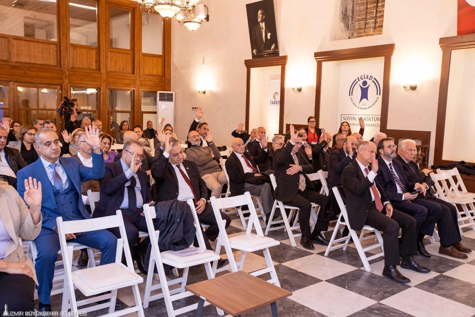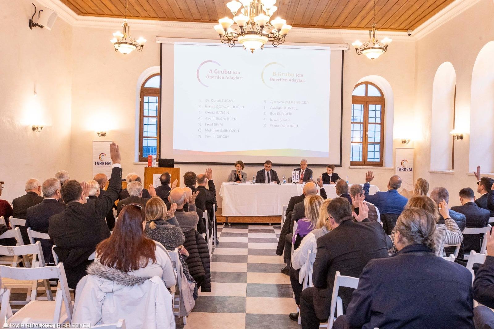 İzmir Büyükşehir Belediyesi öncülüğünde kamu, sivil toplum ve özel sektör işbirliğiyle kentin tarihi değerlerini, kültürel mirasını korumak ve geliştirmek için 2012’de kurulan Tarihi Kemeraltı İnşaat Yatırım Ticaret AŞ’nin (TARKEM) 2023 yılı Olağan Genel Kurul toplantısı EGİAD Sosyal ve Kültürel Etkinlik Merkezi’nde yapıldı. TARKEM’in de yönetim kurulu başkanlığını yürüten İzmir Büyükşehir Belediye Başkanı Dr. Cemil Tugay yönetimindeki toplantıya İzmir Vali Yardımcısı İsmail Çorumluoğlu, İzmir Büyükşehir Belediyesi Genel Sekreteri Ramazan Tezcan, TARKEM’de yer alan kamu kurumları, sivil toplum kuruluşları, özel sektör temsilcileri, odalar ile derneklerin temsilcileri kurula katıldı. Olağan genel kurulda TARKEM’in faaliyet raporu sunumu da yapıldı.