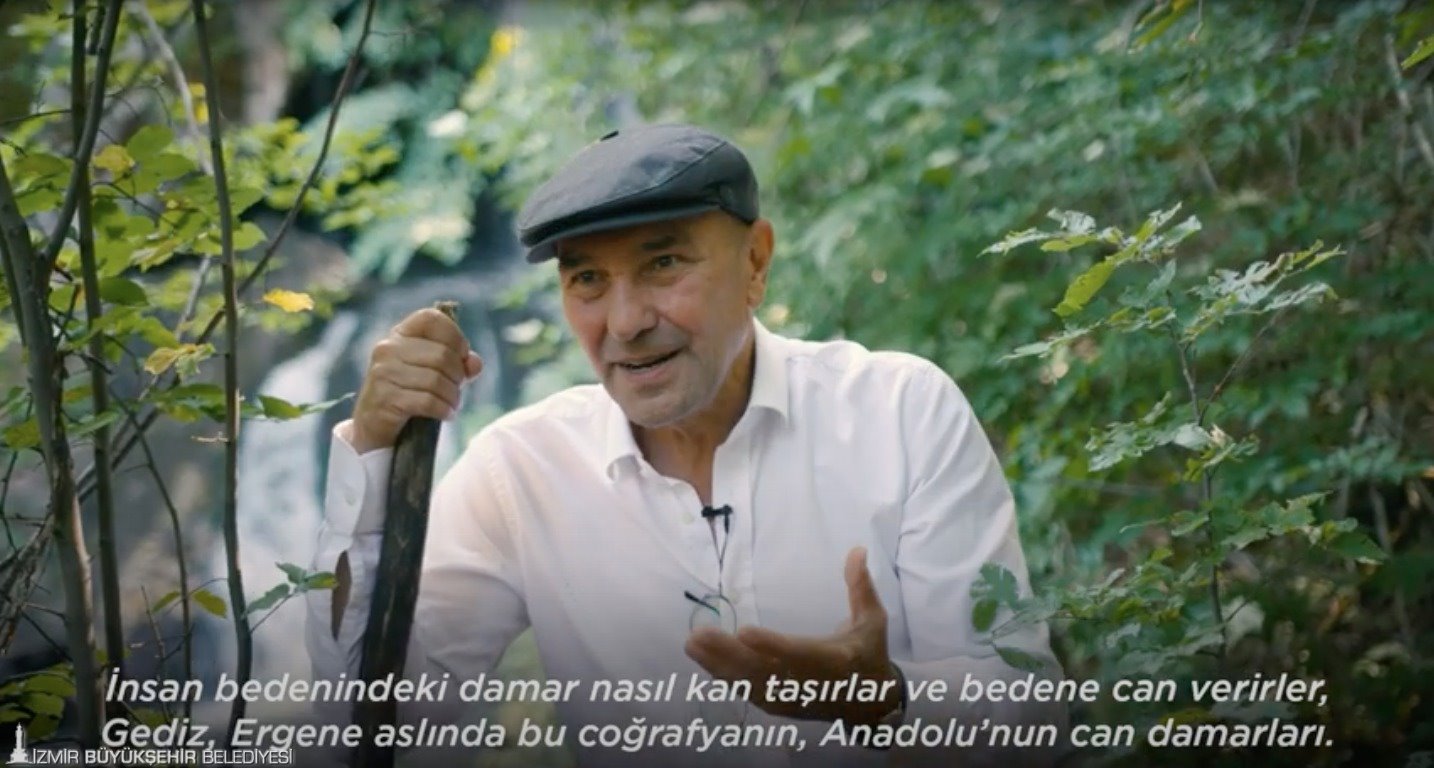 Belgeselin başında Murat Dağı’ndaki Kaynarpınar Şelalesi’nde görüşlerini aktaran Başkan Soyer, “Gediz’in kirliliğiyle başa çıkmak mümkün değil. Nasıl temizlenecek? 400 km bir güzergah. Herkes kirletiyor çünkü. ‘Hayır’. Herkes kirletmeyi bırakacak. Kirlettirmeyeceğiz, koruyacağız. Gediz böyle pırıl pırıl aksa, tertemiz bir İzmir Körfezi olur, tertemiz bir deniz olur. Aşağıda 40 derece sıcaklıkta başka bir dünya ama burada derinizi ürperten bir serinlik var. Bundan sonrasında hüzün başlıyor, öfke başlıyor, kızgınlık başlıyor. Çünkü bu muazzam zenginliği, bu muazzam güzelliği aşağıda görüyoruz ve nasıl kirlendiğini, nasıl zehirle karıştığını ve nasıl bozulduğunu, mahvedildiğini görüyoruz. Buna izin vermemek lazım” şeklinde konuşuyor.