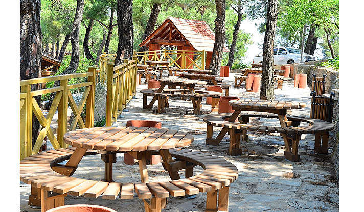 Tesisin Doğu bölümündeki körfez manzaralı seyir terasında gözleme- mantı evi oluşturuldu. Baraj gölü manzaralı batı seyir terasında aperatif yiyeceklerin (sandviç, tost, tatlı, unlu mamüller, sıcak ve soğuk içecekler) satışının yapıldığı bir bölüm yapıldı. İki katlı kır kahvesinin özellikle teras bölümünde çam ağaçları içinde gün batımını seyretmek isteyen İzmirliler, yine aperatif yiyecekler ile sıcak ve soğuk içeceklere ulaşabilecekler. Çocuk oyun grubunun bulunduğu alanın yanında oluşturulan Park Kafe’de daha çok miniklerin ilgisini çekecek dondurma, pamuk helva, haşlanmış mısır gibi yiyecekler bulunacak. Minikler ayrıca, burada kurulacak ‘vitamin bar’da enerjilerini tazeleyebilecek. Grand Cafe’de ızgara çeşitleri konukların beğenisine sunulurken, Budak Cafe’de fastfood ve soğuk-sıcak içecek satışı yapılacak. Tesisin zirvesinde kurulan ‘Et Evi’nde ise kontrollü mangal hizmeti sunulacak. Bu bölgede kurulan tesis, masalı banklı ve tuğla mangallı oturma grupları ile İzmirlilere hizmet verilecek. Vatandaşlar kendileri için yakılan mangallarda et evinden temin ettikleri et çeşitleri ve şarküteri ürünlerini kendileri pişirecekler. Ayrıca yine vatandaşların dışarıdan yiyecek getirmeden Teleferik Tesisi içindeki ihtiyaçlarını karşılayabilmeleri için kurulan market de hizmet verecek.