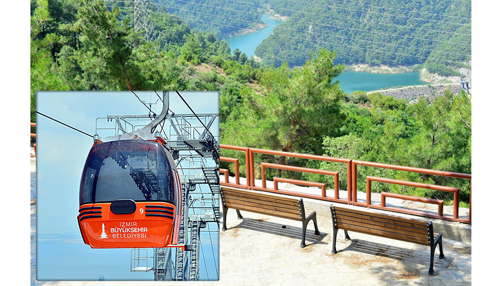 Tesislere gelenlerin İzmir’in eşsiz körfez manzarasını kuş bakışı görebilmesi için kabinlerden indikten sonraki giriş bölümünde seyir terası oluşturuldu. Bu bölgeye dürbünler yerleştirilerek manzaranın daha net görülmesi sağlanacak.