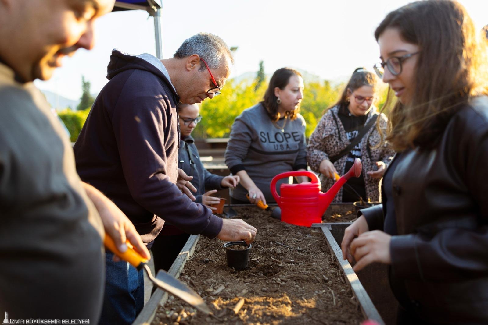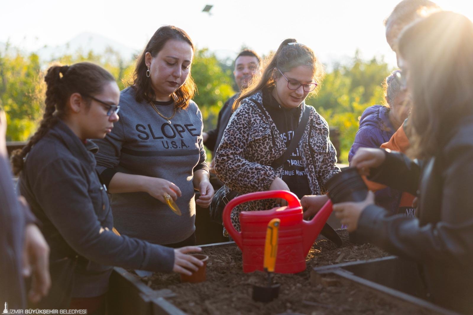 İzmir Büyükşehir Belediyesi’nin “Parkta Etkinlik Var” projesi kapsamında İnciraltı Terapi Bahçesi’nde düzenlediği “Tohumdan Sofraya” etkinlikleri devam ediyor. Son olarak Balçova Belediyesi Engelli Hakları Masası’na kayıtlı 16 öğrenci ve ailelerinin katıldığı renkli etkinlik, doğayla iç içe, öğretici ve keyifli anlara sahne oldu. Katılımcılar, doğal ortamda tohumun toprağa ekilmesinden sofraya gelinceye kadar geçirdiği süreci yakından gözlemleme ve deneyimleme imkânı buldu. Çocuklar ve aileleri, uygulamalı çalışmalarla tohum ekimi, fide dikimi, bakım ve hasat gibi tarım süreçlerine katılarak üretimin ne kadar emek gerektirdiğini yerinde öğrendi.