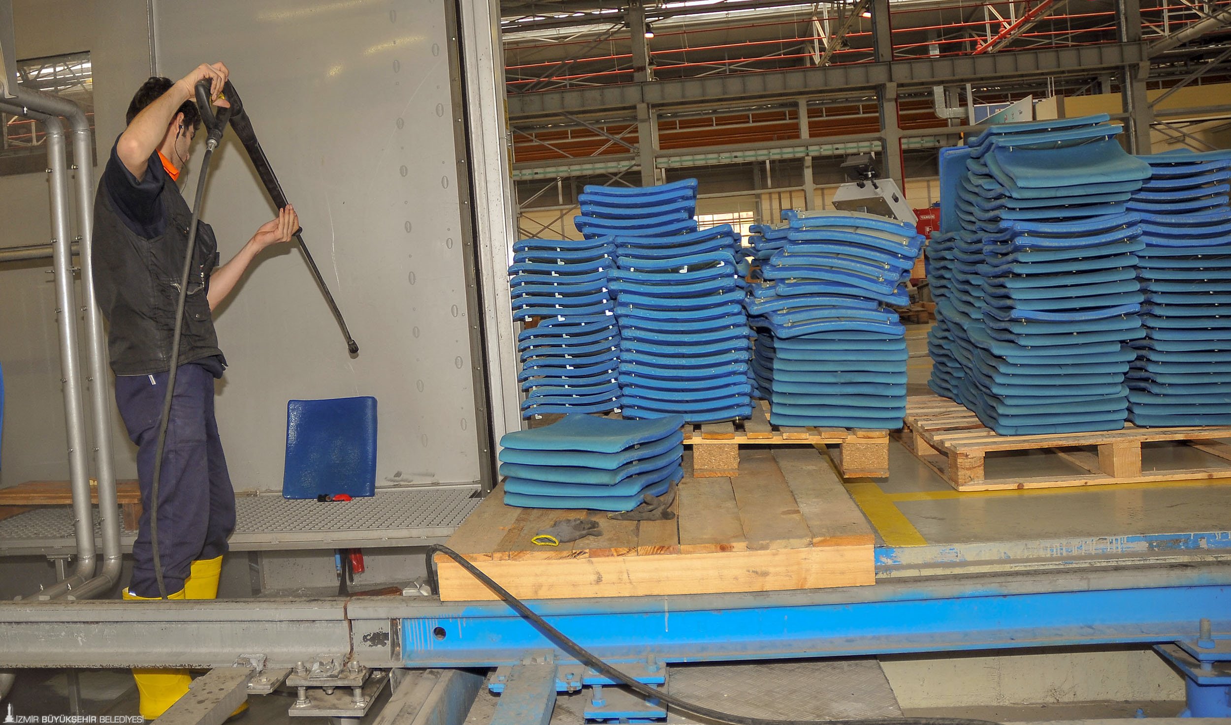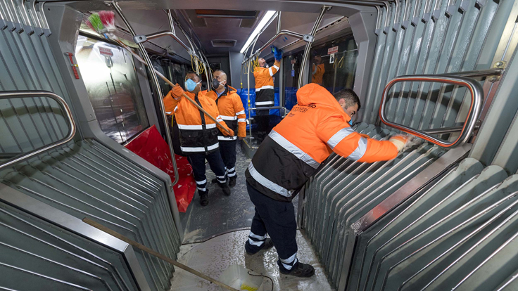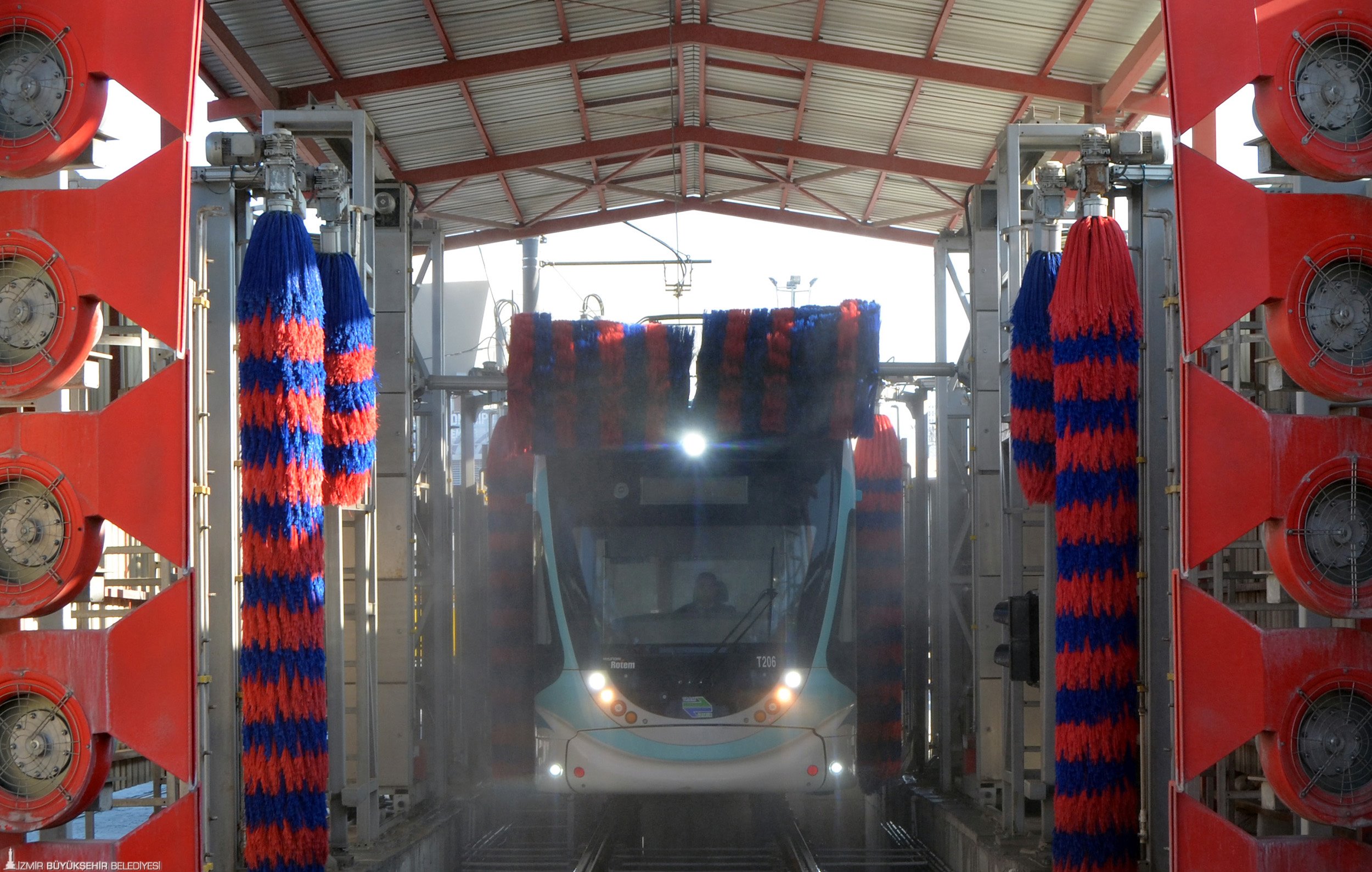 182 metro ve 38 tramvay aracı da her gün fırçalı yıkama ünitesinde otomatik olarak yıkanıyor; dezenfeksiyon sıvısı pulverize edilerek kullanıma hazır hale getiriliyor. Periyodik olarak da koltuk, tutamak gibi malzemeler tamamen sökülüp detaylı olarak temizleniyor.