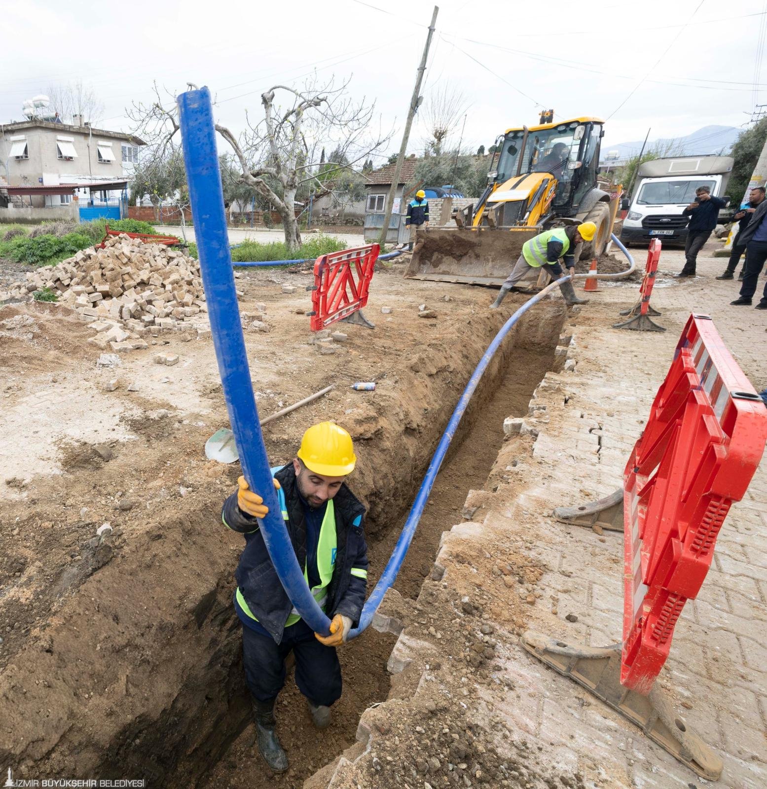 İzmir Büyükşehir Belediyesi İZSU Genel Müdürlüğü, kent genelindeki altyapı çalışmalarını aralıksız sürdürüyor. Torbalı’dan Menderes ve Selçuk’a uzanan bölgede, 180 milyon liralık yatırımla 71 kilometrelik içme suyu hattı yenilenecek. İmalatlar Torbalı Pamukyazı Mahallesi’nde başlayan çalışmalar, ilçenin Helvacı ve Kaplancık mahalleleri ile Menderes’te Görece, Cumhuriyet ve Oğlananası mahallelerinde, Selçuk’ta Zeytinköy Mahallesi’nde devam edecek.
