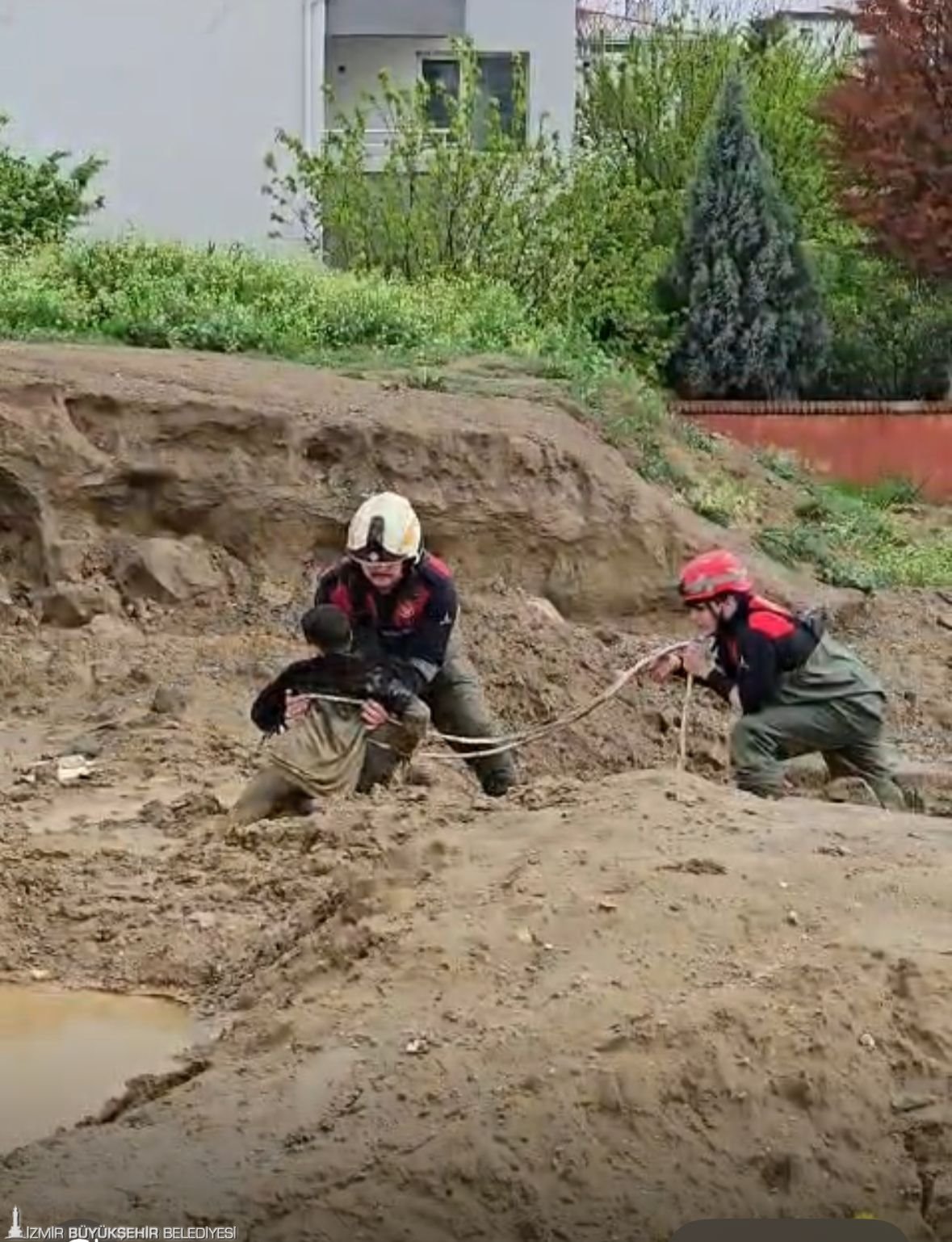 İzmir’in Torbalı ilçesi Cumhuriyet Mahallesi’nde, dün etkili olan yoğun yağışın ardından balçığa dönen arazide top oynayan 10 yaşındaki iki çocuk çamura saplanarak mahsur kaldı. Yağışla birlikte zeminin yumuşayıp adeta bataklığa dönüştüğü alanda hareket etmekte zorlanan çocuklar, her çırpınışta daha da derine gömülme riskiyle karşı karşıya kaldı. Çevredeki vatandaşların ihbarı üzerine olay yerine sevk edilen İzmir Büyükşehir Belediyesi İtfaiye Dairesi Başkanlığına bağlı Torbalı ekipleri, zamana karşı yarış başlattı.