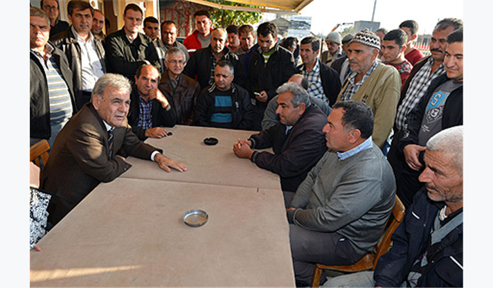 Develi köyü kahvehanesinde vatandaşları dinleyen Başkan Aziz Kocaoğlu, “Hizmet yapmak için buradayız. Aksi halde gider evimizde otururduk” dedi.