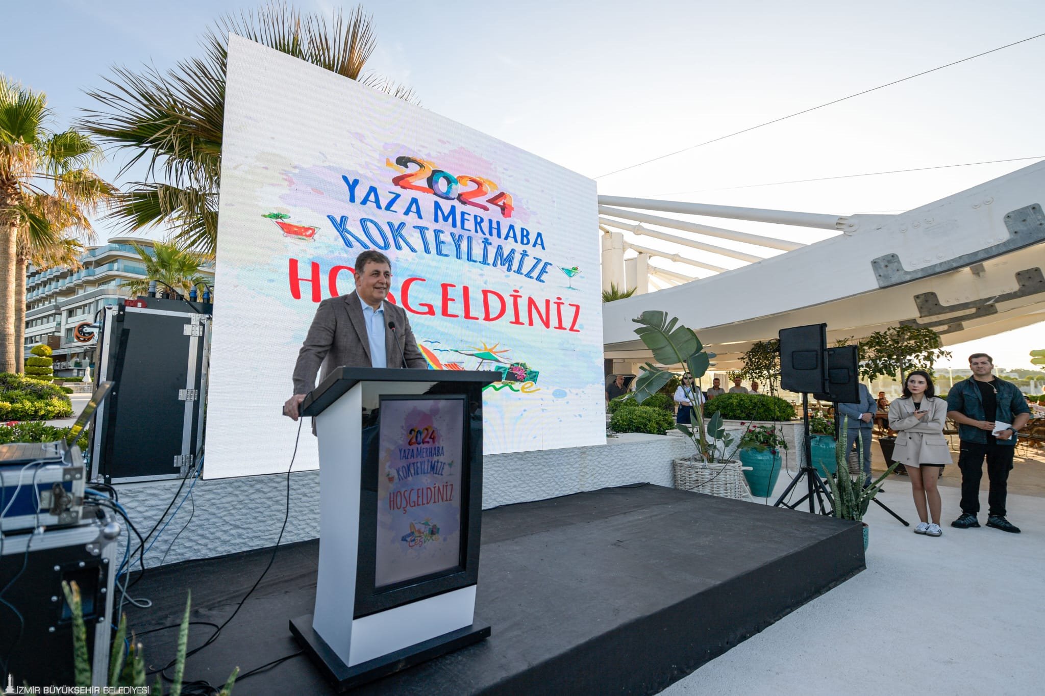 Kokteyle gelirken Çeşme’deki anılarını anımsadığını anlatan Başkan Tugay, “Şimdi İzmir Büyükşehir Belediye Başkanı olarak burada aranızda olmak büyük bir onur. Bu onurun getirdiği büyük sorumluluklar olduğunu da biliyorum. Çevremizde oluşan o güven duygusunu biz de hissediyoruz. Buna karşılık da gecemizi gündüze katarak çalıştığımızı, çaba gösterdiğimizi bilmenizi isterim” ifadelerini kullandı.