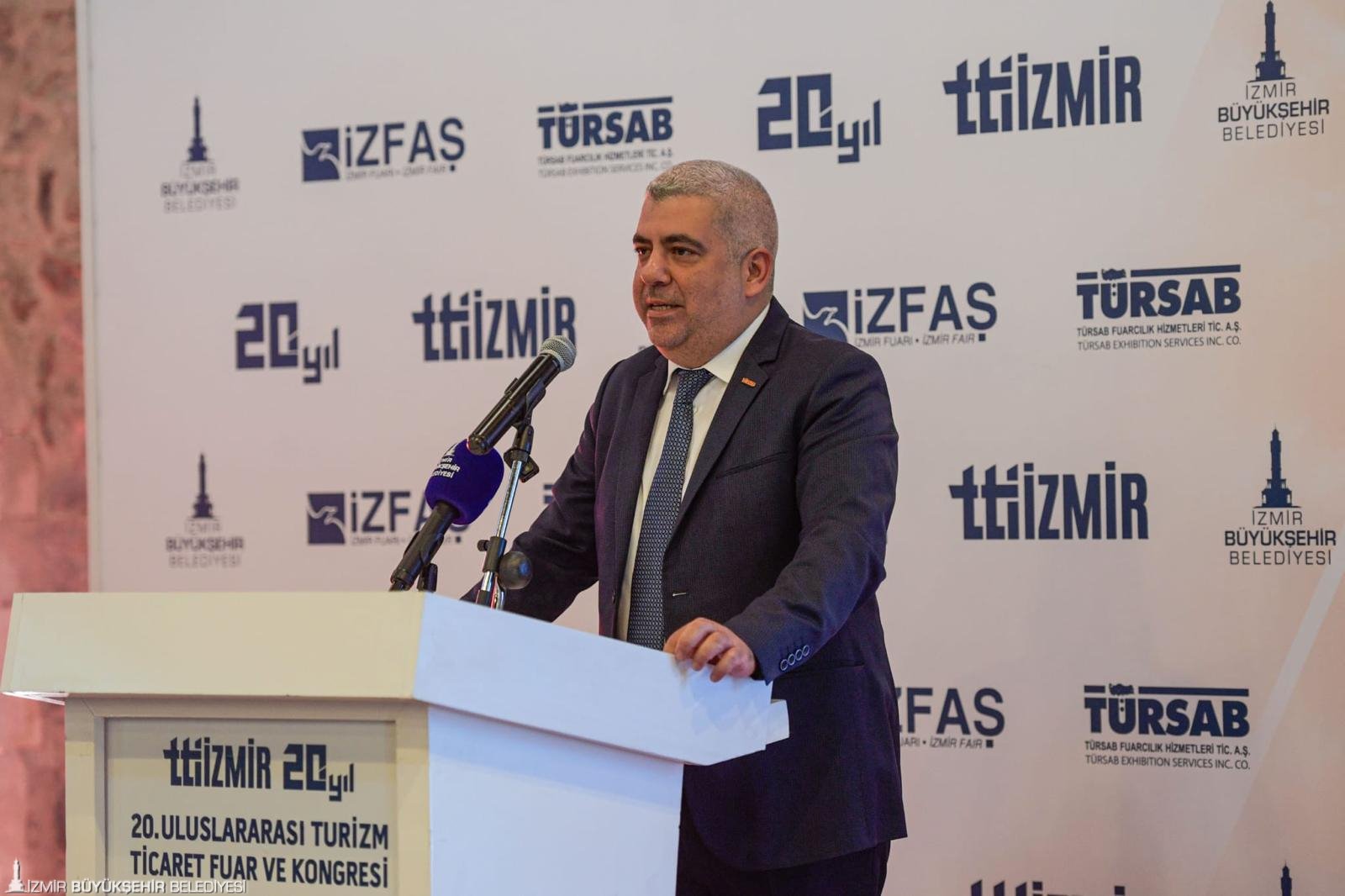 TÜRSAB İzmir Bölge Temsil Kurulu Başkanı Hakkı Karadeveci ise “Fuarın 20’nci yılına yaklaşırken şunu çok net söyleyebiliriz; bu fuar sadece bir organizasyon değil, bizim emeğimizin, birikimimizin ve birlikte üretme gücümüzün bir yansıması. İzmir her zaman turizmin önemli merkezlerinden biri oldu, ama bu gücü gerçekten hissettiren sizlersiniz. Sahada olan, misafirle birebir temas eden, bu sektörü omuzlayan acentelerimiz, en özenli şekilde konuk eden otelcilerimiz... Bazen en büyük güç aynı masada oturabilmekten geçiyor. Önümüzde yeni bir dönem ve değişen bir turizm dünyası var ama şuna inanıyorum; birlikte olursak, birbirimize sahip çıkarsak sadece ayakta kalmayız, çok daha güçlü oluruz” açıklamasında bulundu.
