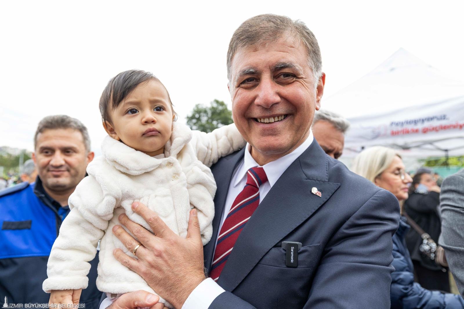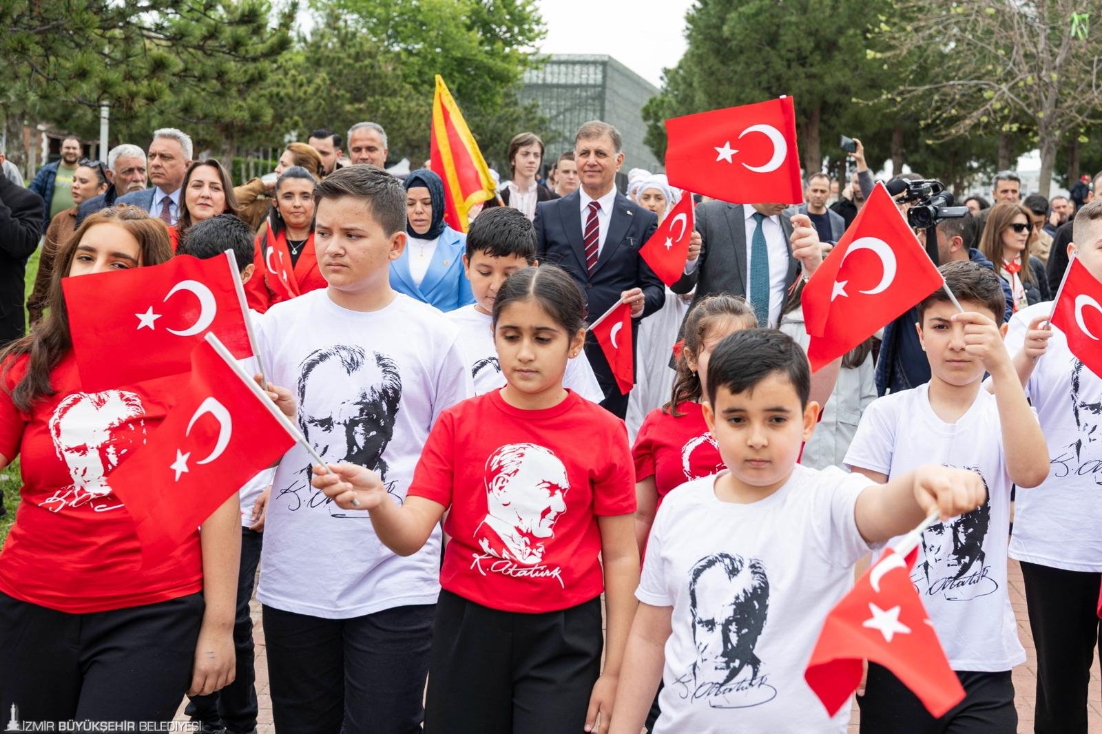 İzmir Büyükşehir Belediye Başkanı Dr. Cemil Tugay, “Bayramlar çok kıymetli, milletimize verilmiş armağanlar. Değerini bilmemiz lazım, anlamını anlamamız lazım” dedi. Demokrasi vurgusu yapan Başkan Dr. Cemil Tugay, “Kafanızı hiçbir şeyin karıştırmasına izin vermeyin. Demokrasiye, halkın egemenliğine, sizlerin egemenlik hakkınıza herkesin kayıtsız şartsız sahip çıkması gerektiğini bugün vesilesiyle tekrar hepimiz hatırlayalım. Ulusal egemenlik, cumhuriyet, bağımsızlık, çağdaş bir devlet olma, hukuk devleti olma ilkeleri yeme içme kadar, soluduğumuz hava kadar değerli. Başka türlü inanın biz bu güzel çocuklara hiçbir şekilde iyi bir ülke bırakamayız” diye konuştu.