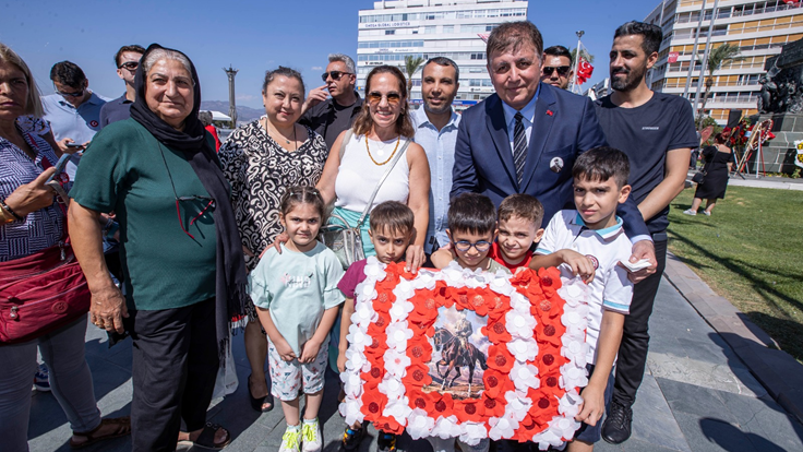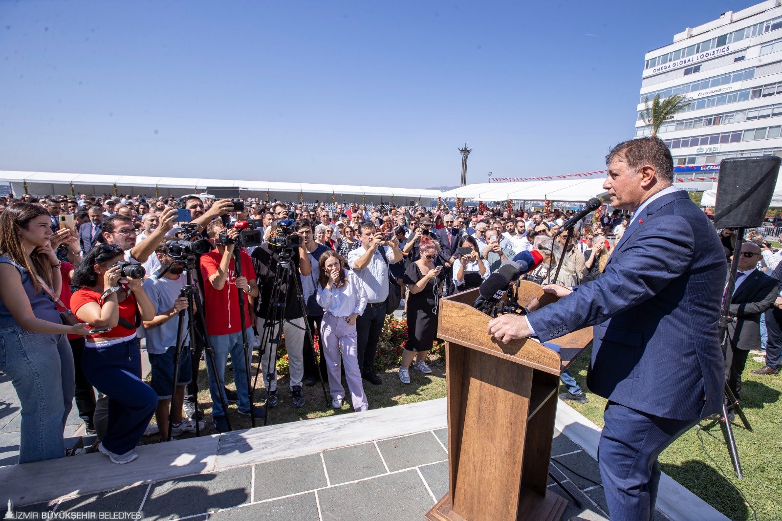 Başkan Tugay, alandaki kalabalığın yoğun ilgisi ve sevgisiyle karşılaştı. Vatandaşların fotoğraf çektirmek istediği Başkan Tugay, İzmirli minikler tarafından yapılmış ve kendisine hediye edilen çelengi de kabul etti.