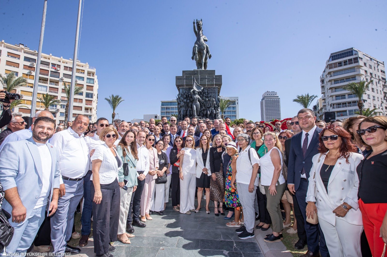 CHP İl Başkanı Şenol Aslanoğlu ise “İzmir’de çifte bayramı kutluyoruz. İzmir’imizin kurtuluşunun 102’nci ve CHP’mizin kuruluşunun 101’inci yıl dönümlerinin coşkusunu yaşıyoruz. Memleketin en nadide şehrinde, kurucumuz Mustafa Kemal Atatürk’ün bir başka sevdiği İzmir’de, kurtuluşun yaşandığı kutsal topraklardayız. İzmir’in kurtuluşu vatanın kurtuluşudur. İzmir Mustafa Kemal Atatürk’tür. Ne mutlu İzmirliyim diyebilene. Ne mutlu vatanıyla gurur duyabilene” dedi.
